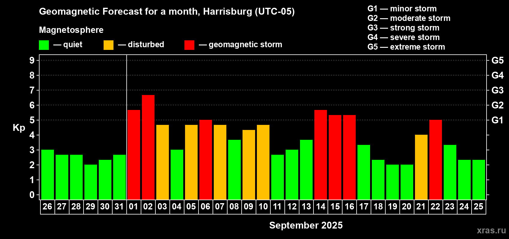 Geomagnetic storm forecast in Harrisburg for Aug 26, 2025