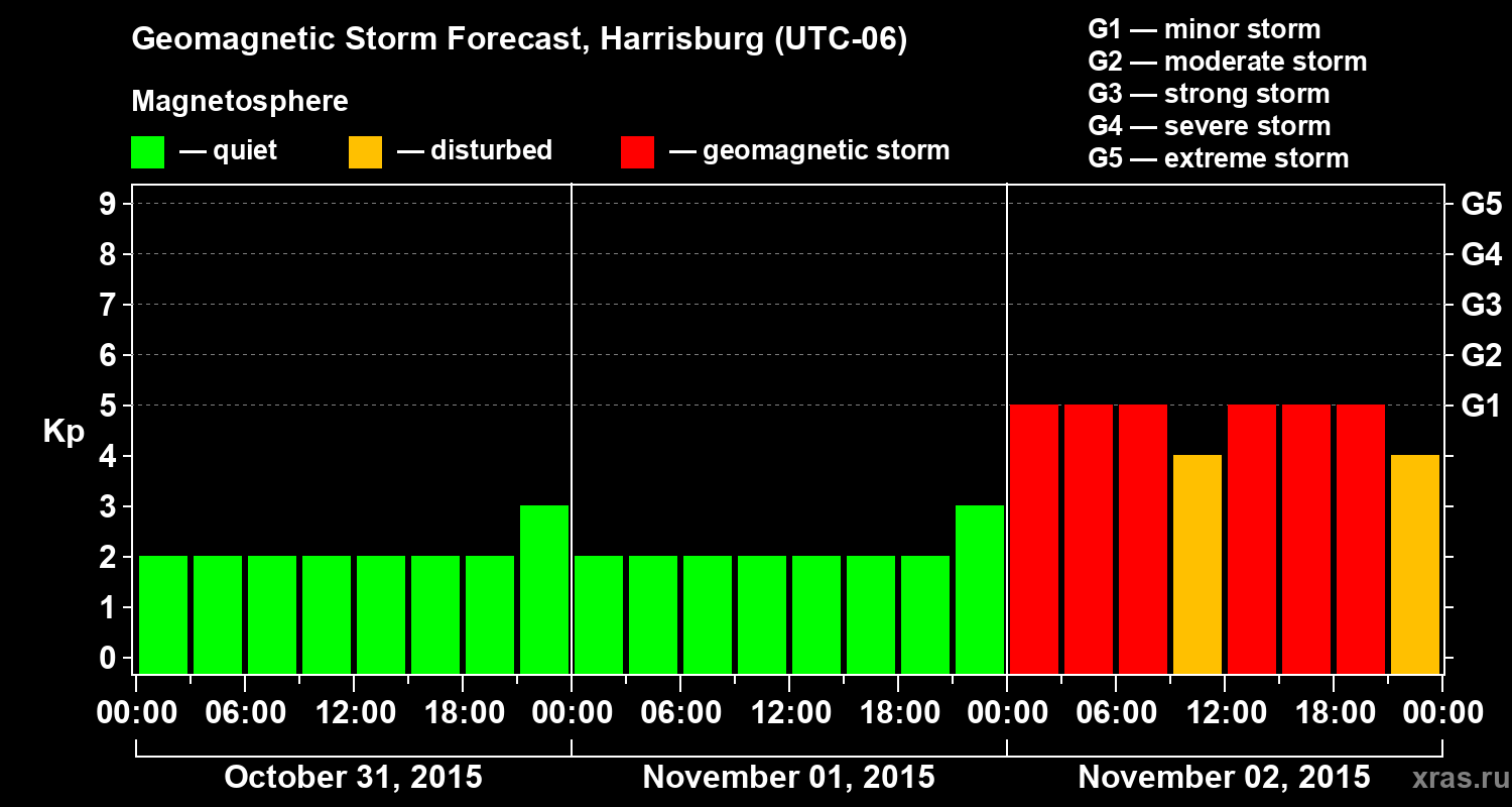 Geomagnetic storm forecast in Harrisburg for Oct 31, 2015