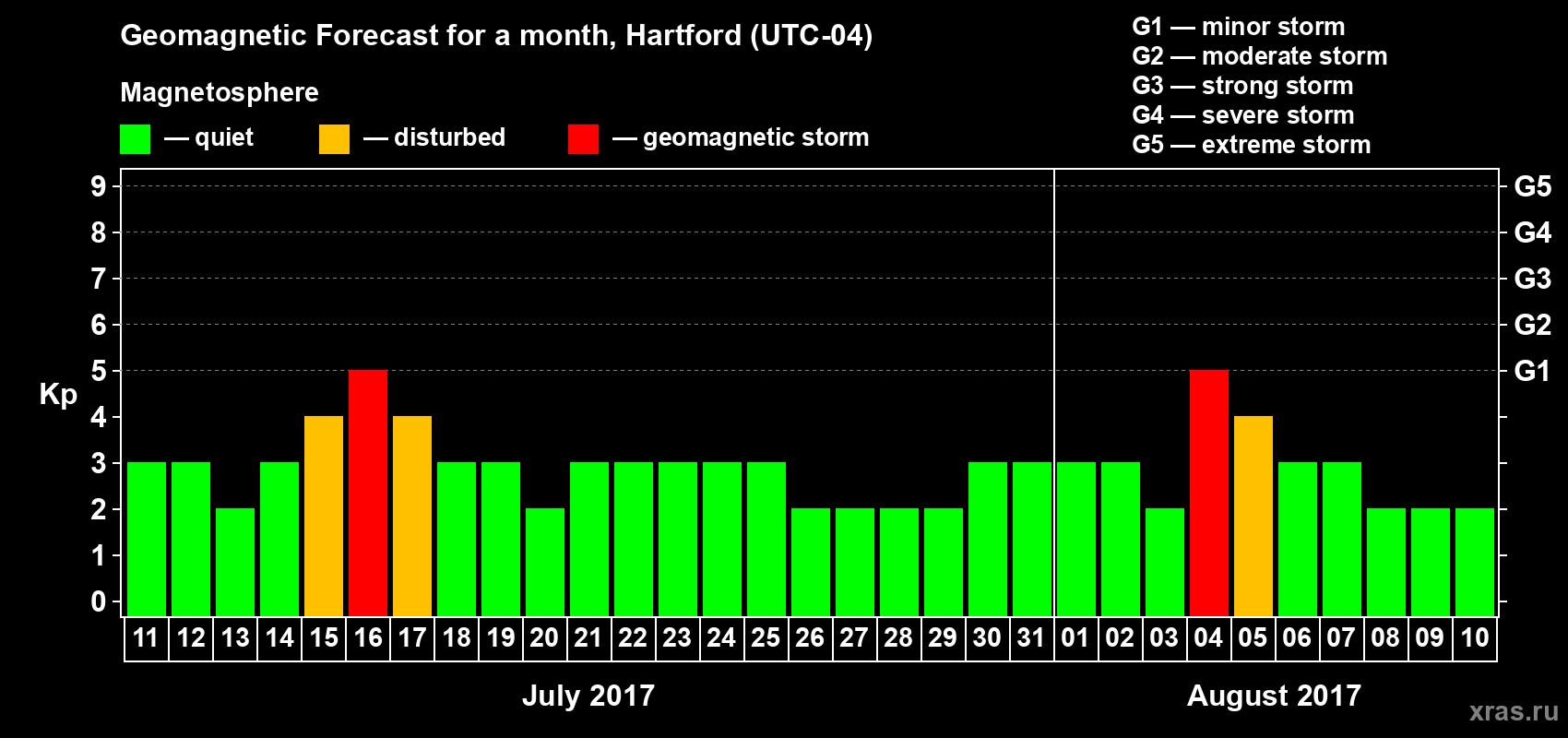 Geomagnetic storm forecast in Hartford for Jul 11, 2017
