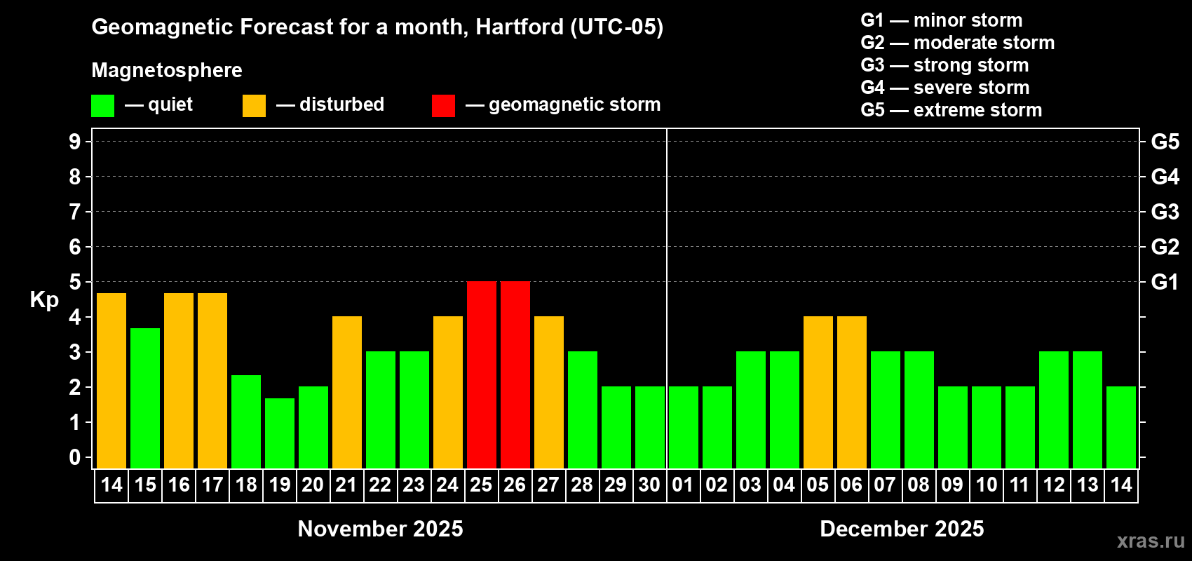 Geomagnetic storm forecast in Hartford for Nov 14, 2025