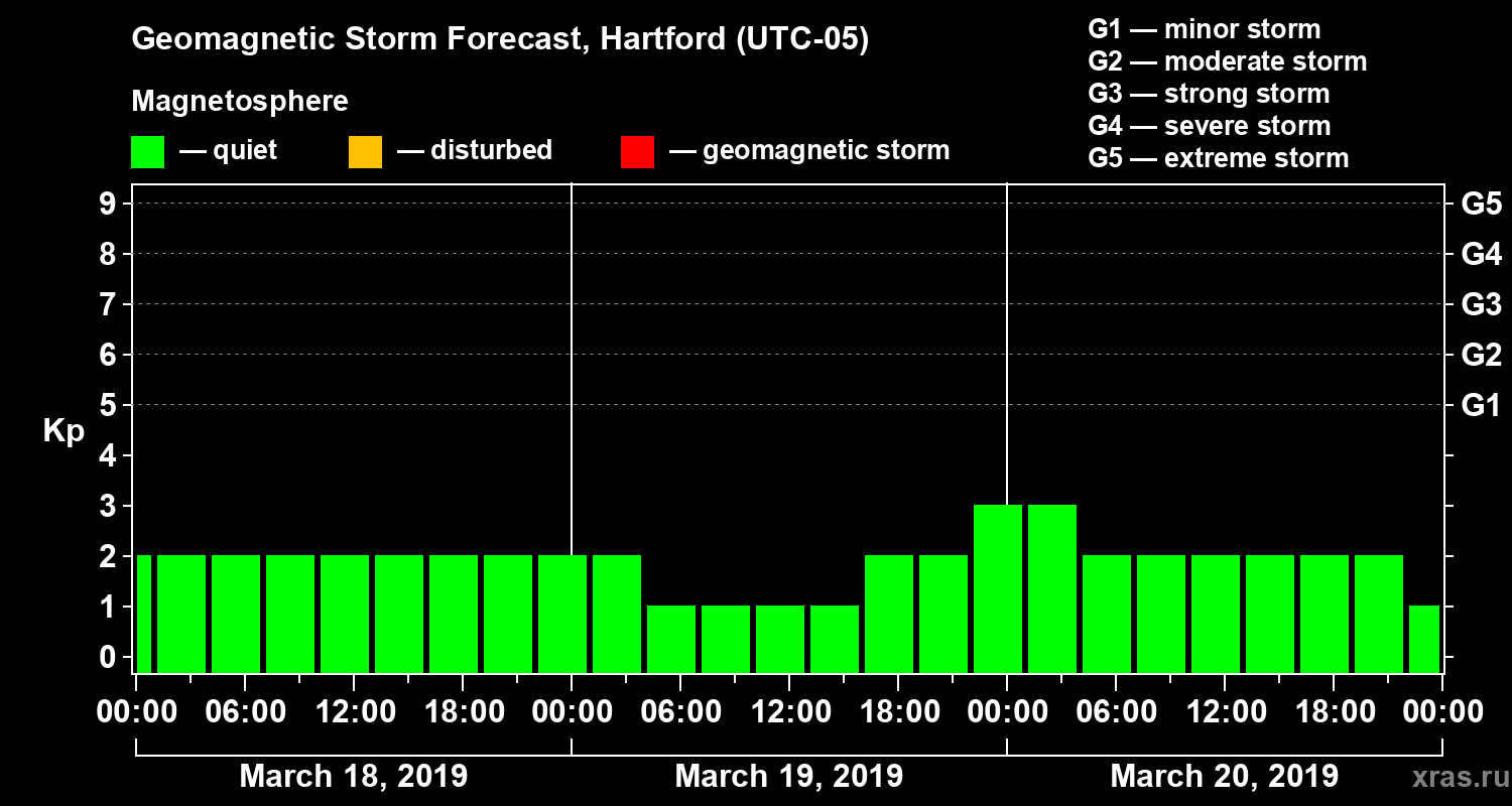 Geomagnetic storm forecast in Hartford for Mar 18, 2019