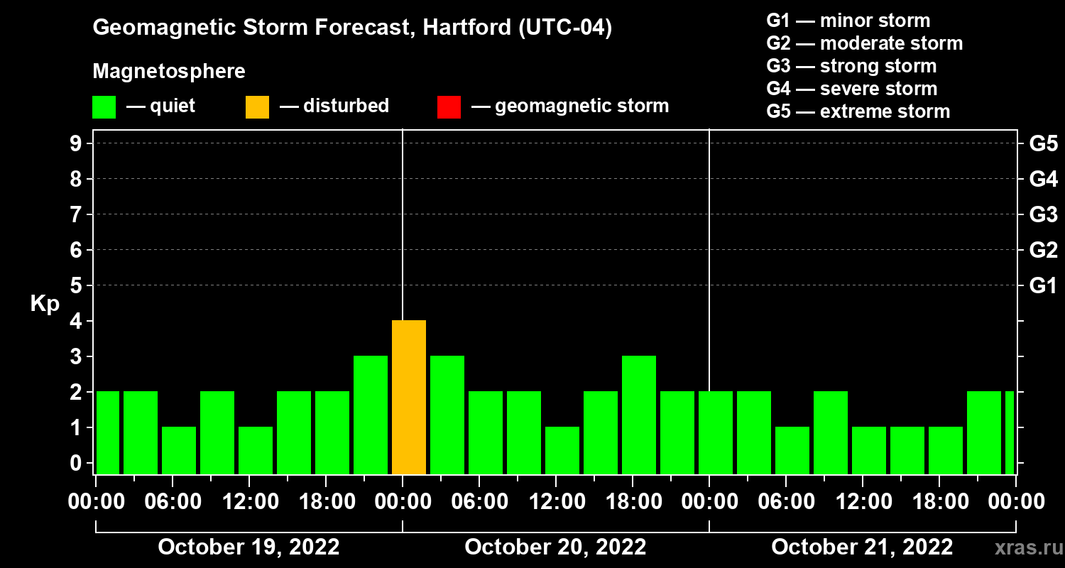 Geomagnetic storm forecast in Hartford for Oct 19, 2022