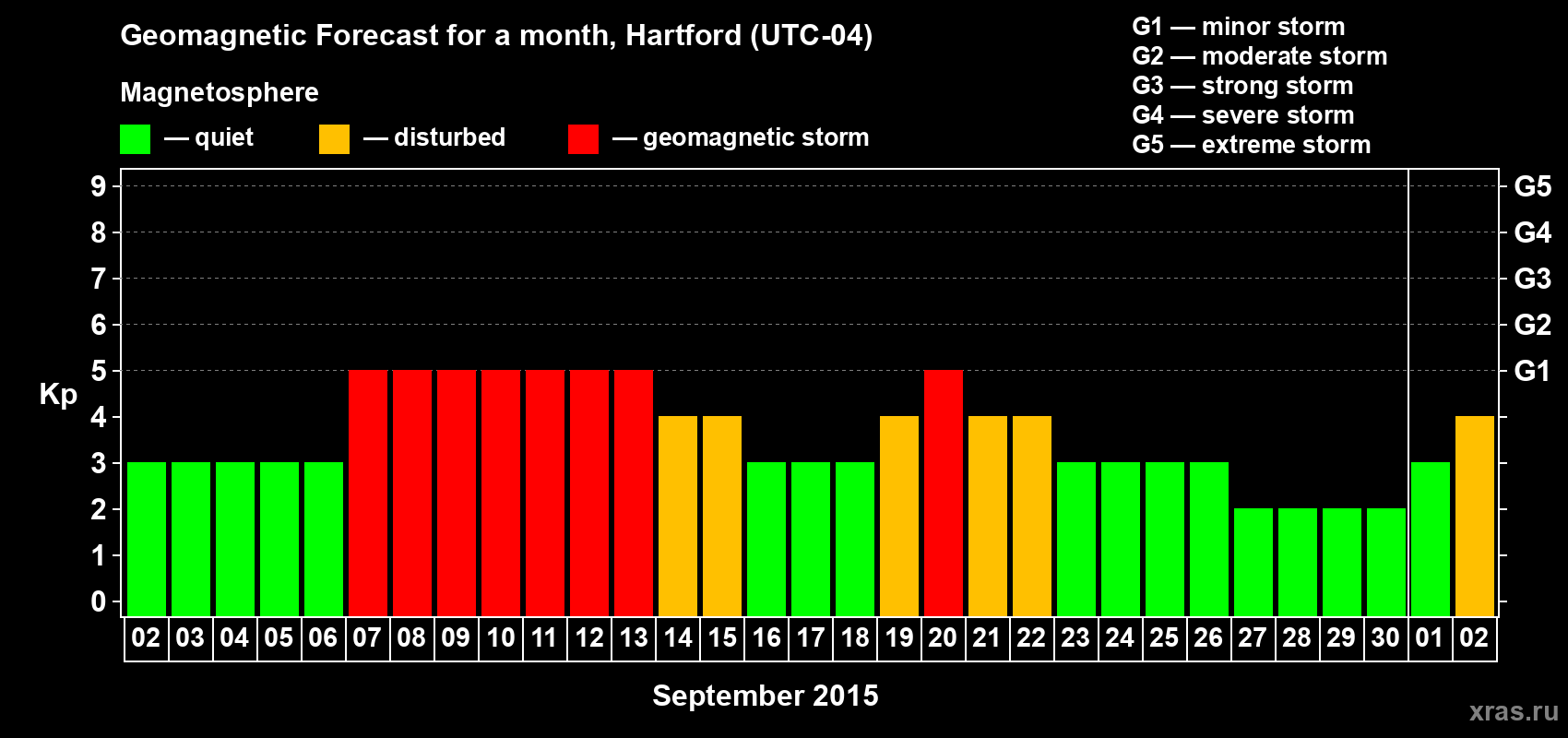 Geomagnetic storm forecast in Hartford for Sep 02, 2015