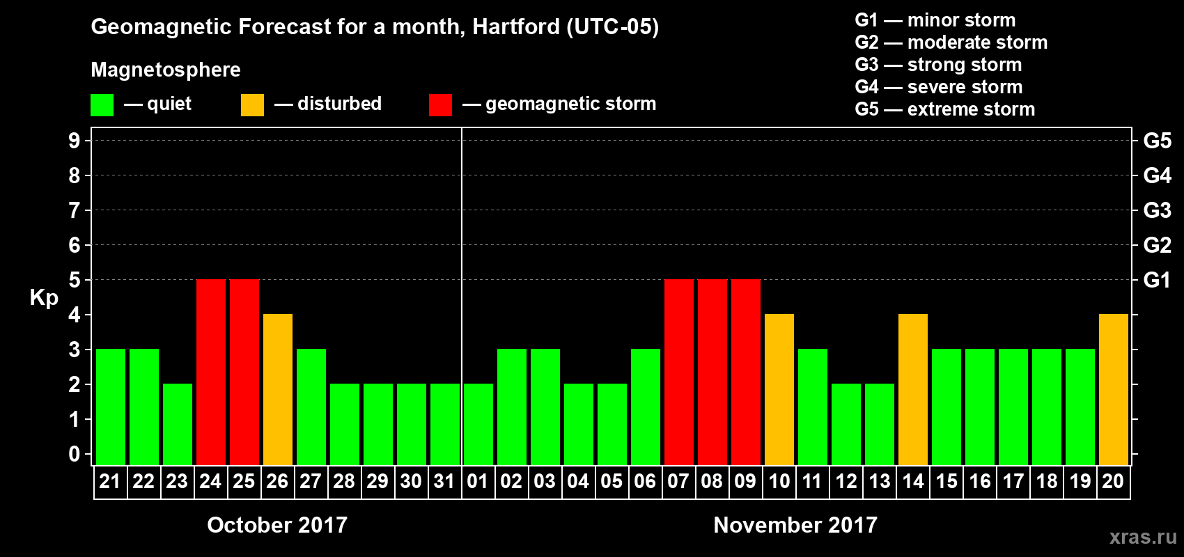 Geomagnetic storm forecast in Hartford for Oct 21, 2017