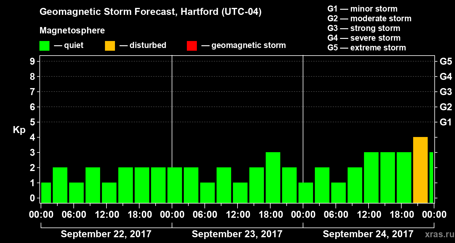 Geomagnetic storm forecast in Hartford for Sep 22, 2017