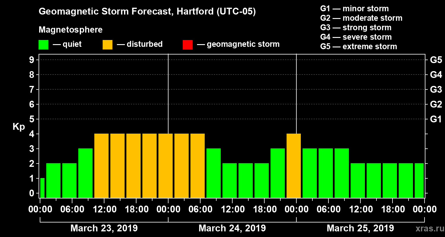 Geomagnetic storm forecast in Hartford for Mar 23, 2019