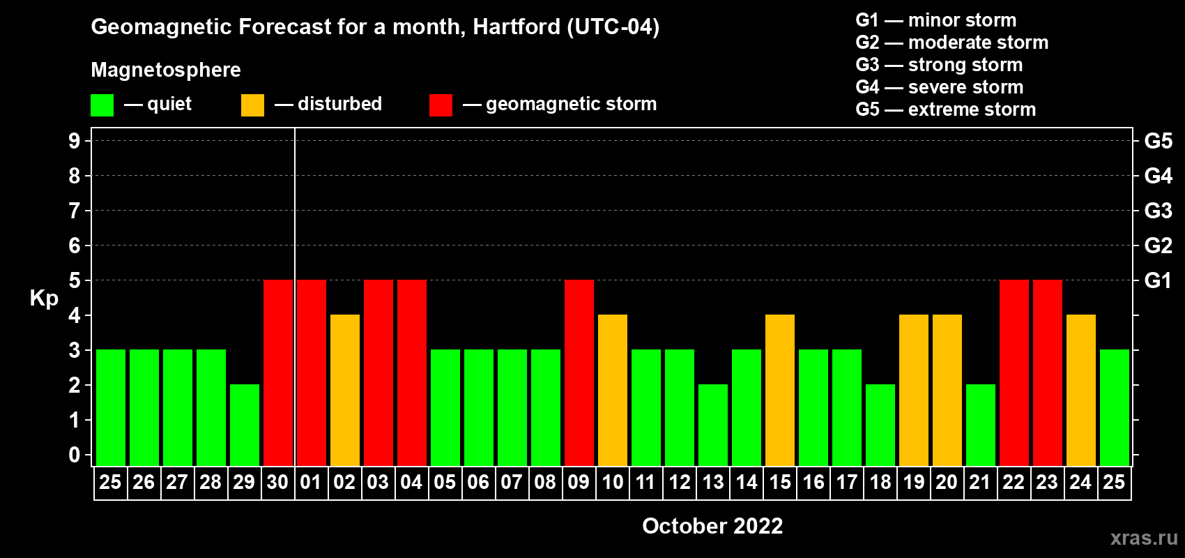 Geomagnetic storm forecast in Hartford for Sep 25, 2022