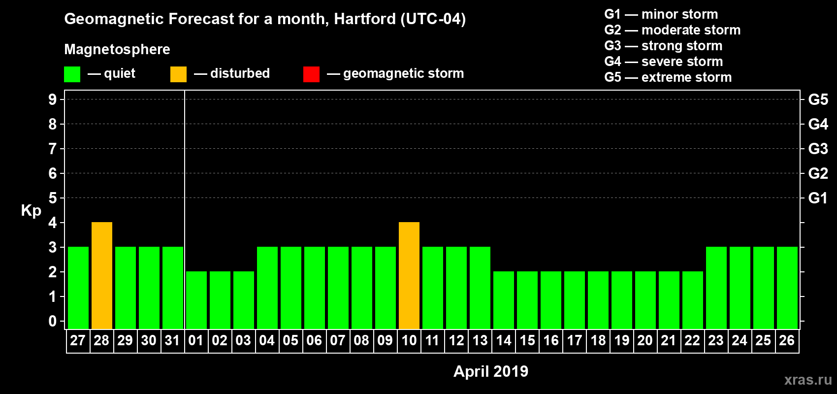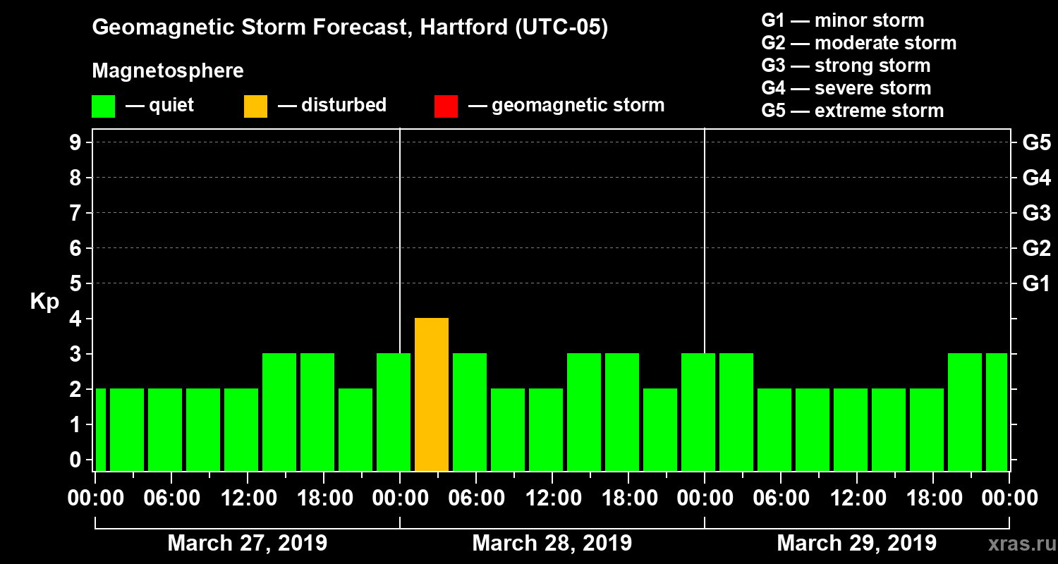 Geomagnetic storm forecast in Hartford for Mar 27, 2019