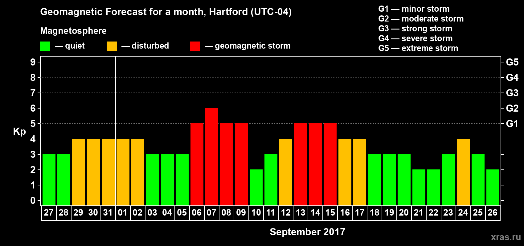 Geomagnetic storm forecast in Hartford for Aug 27, 2017