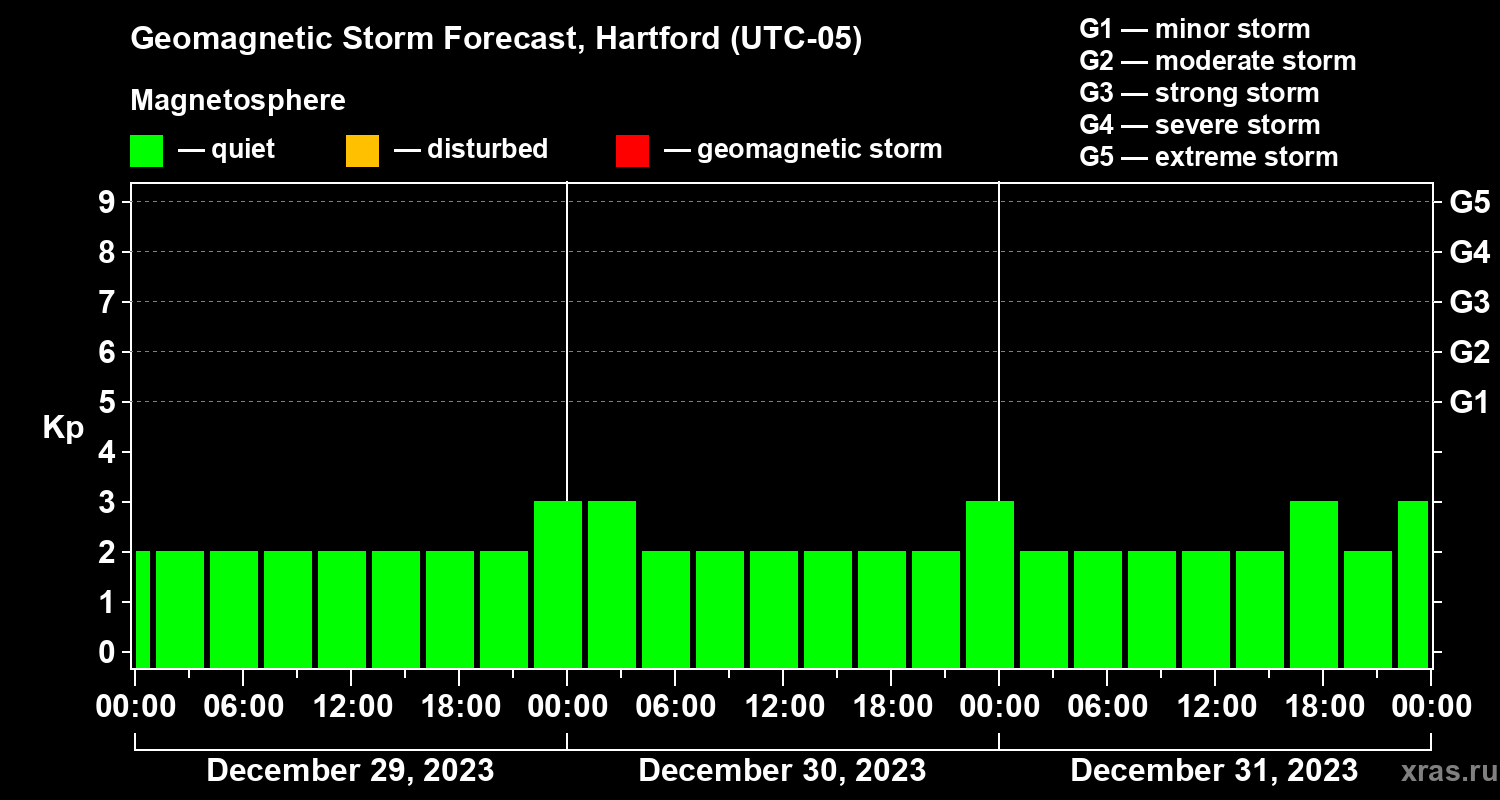 Geomagnetic storm forecast in Hartford for Dec 29, 2023