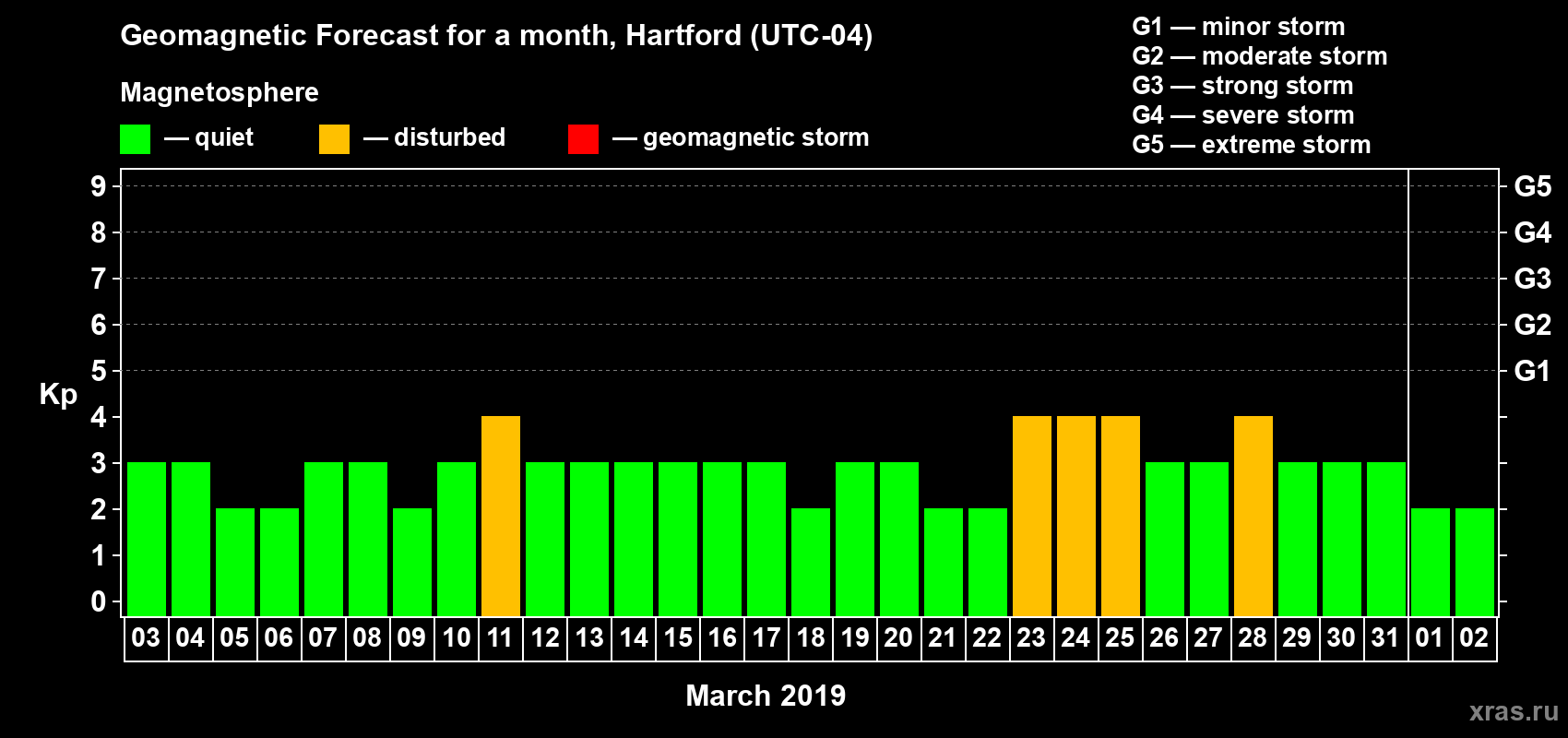 Geomagnetic storm forecast in Hartford for Mar 03, 2019