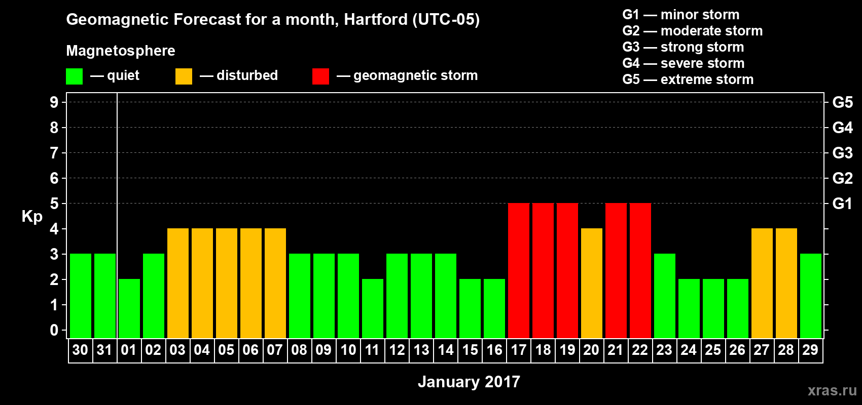 Geomagnetic storm forecast in Hartford for Dec 30, 2016