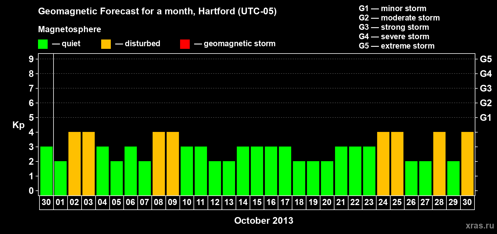 Geomagnetic storm forecast in Hartford for Sep 30, 2013