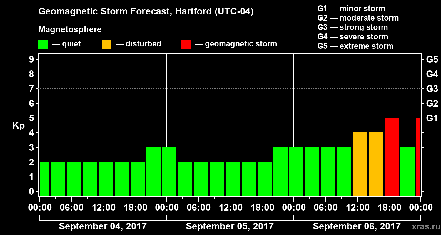 Geomagnetic storm forecast in Hartford for Sep 04, 2017