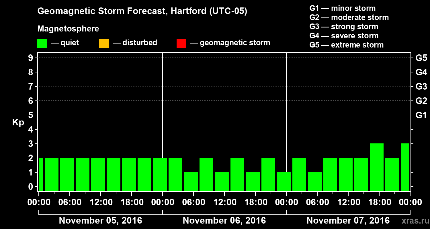 Geomagnetic storm forecast in Hartford for Nov 05, 2016