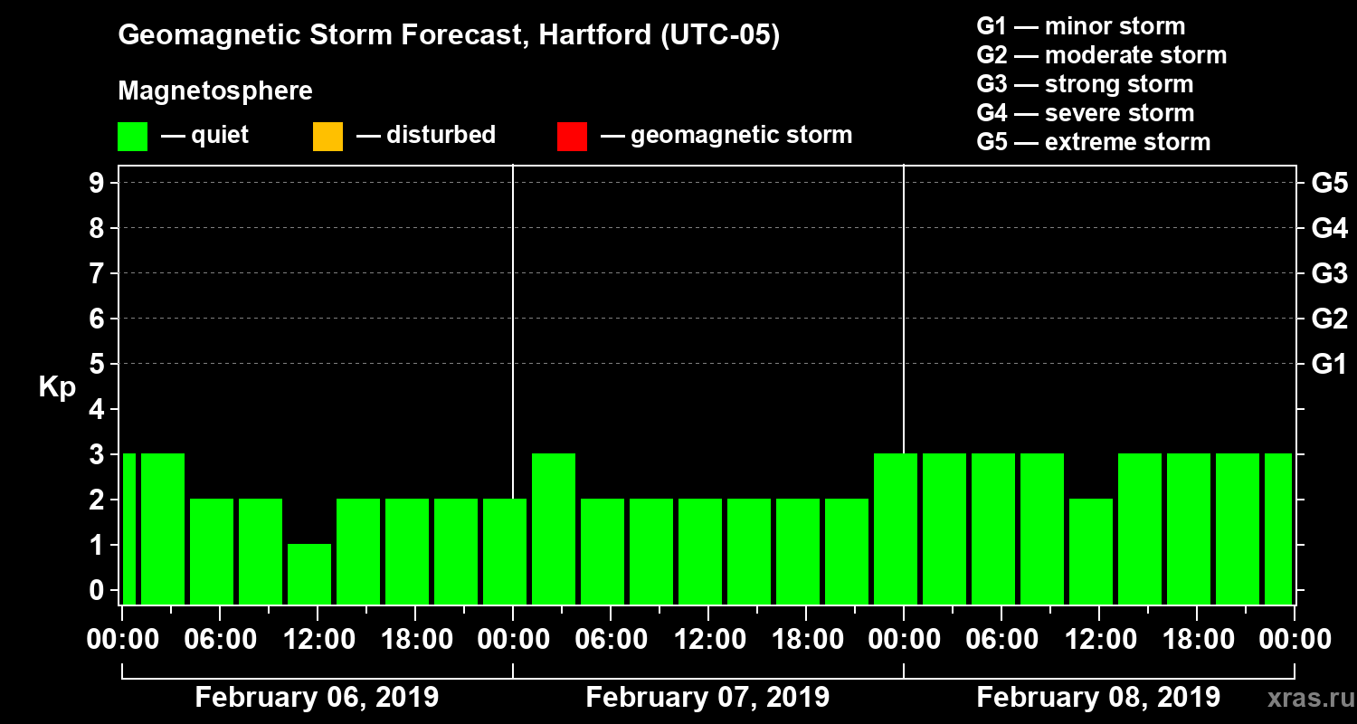 Geomagnetic storm forecast in Hartford for Feb 06, 2019