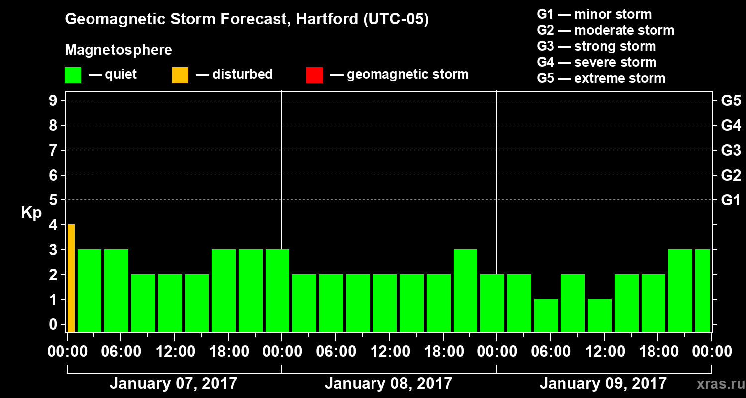 Geomagnetic storm forecast in Hartford for Jan 07, 2017