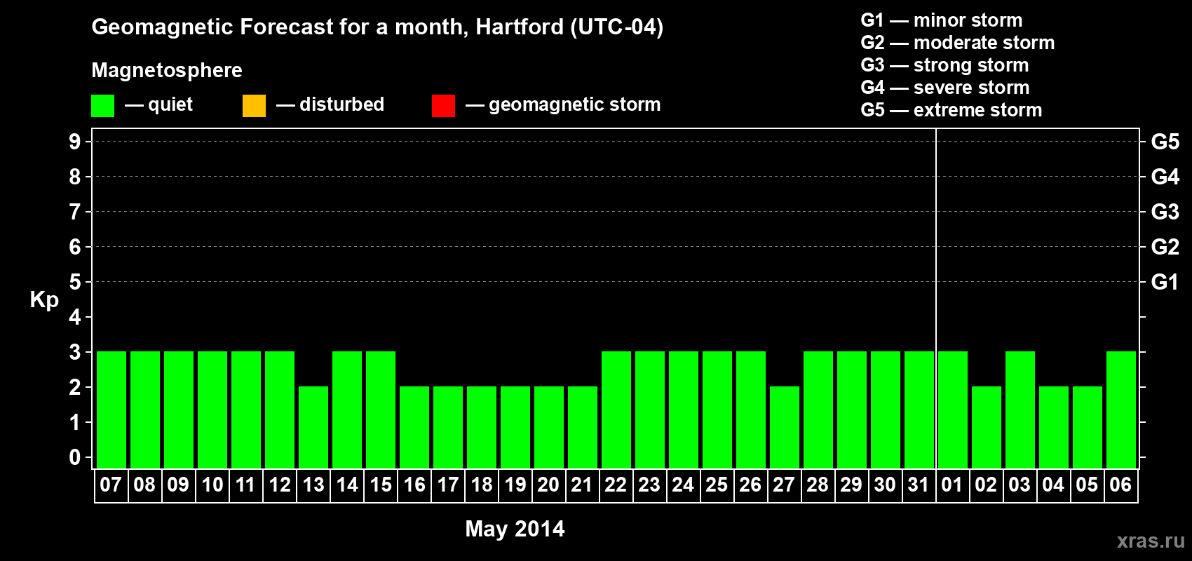 Geomagnetic storm forecast in Hartford for May 07, 2014