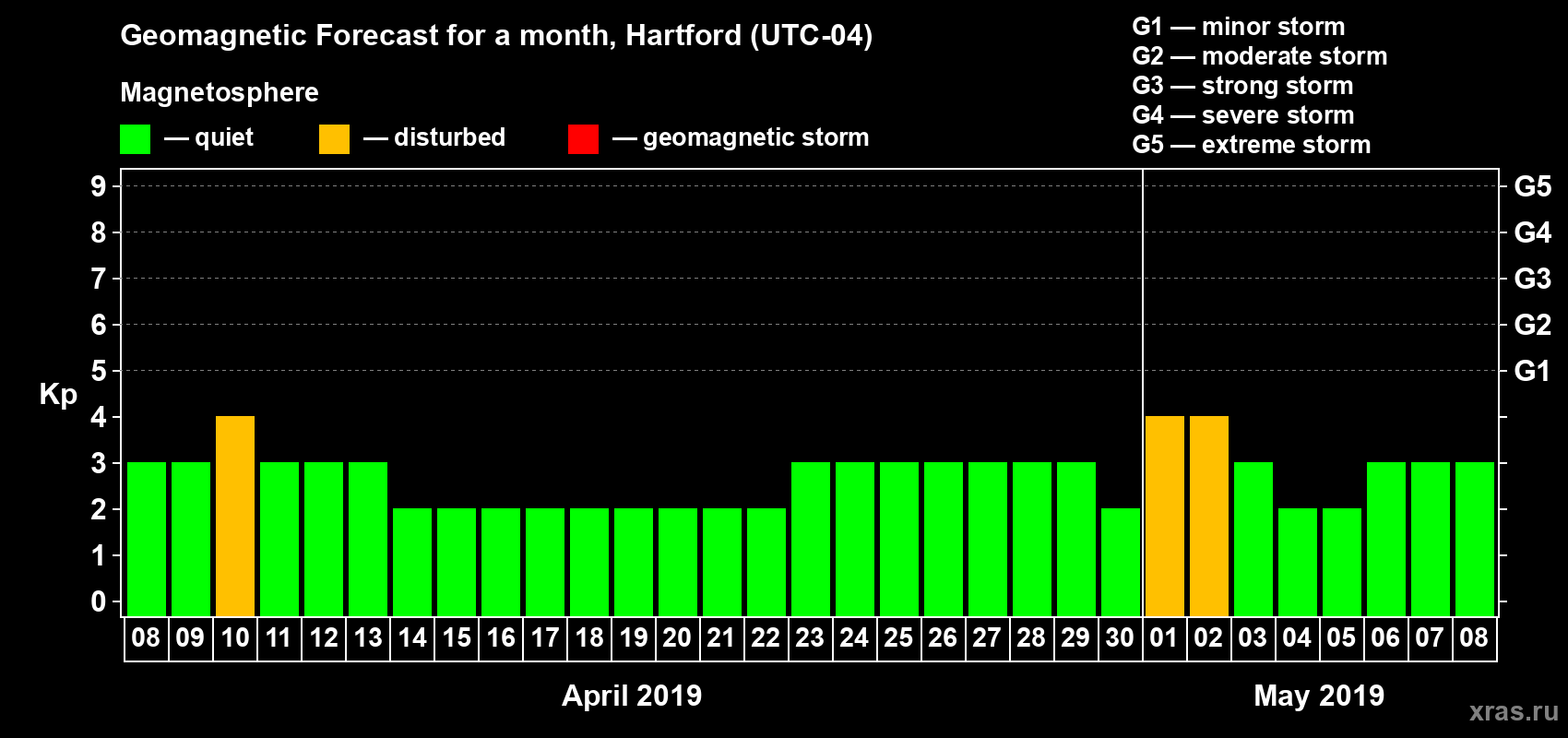 Geomagnetic storm forecast in Hartford for Apr 08, 2019