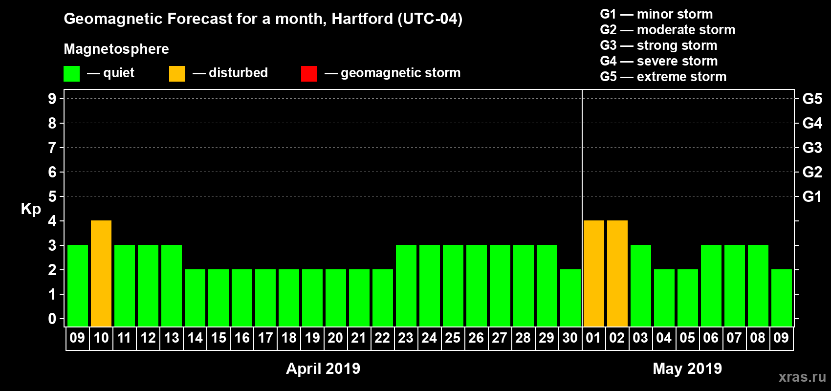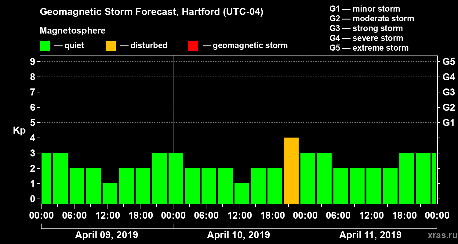Geomagnetic storm forecast in Hartford for Apr 09, 2019