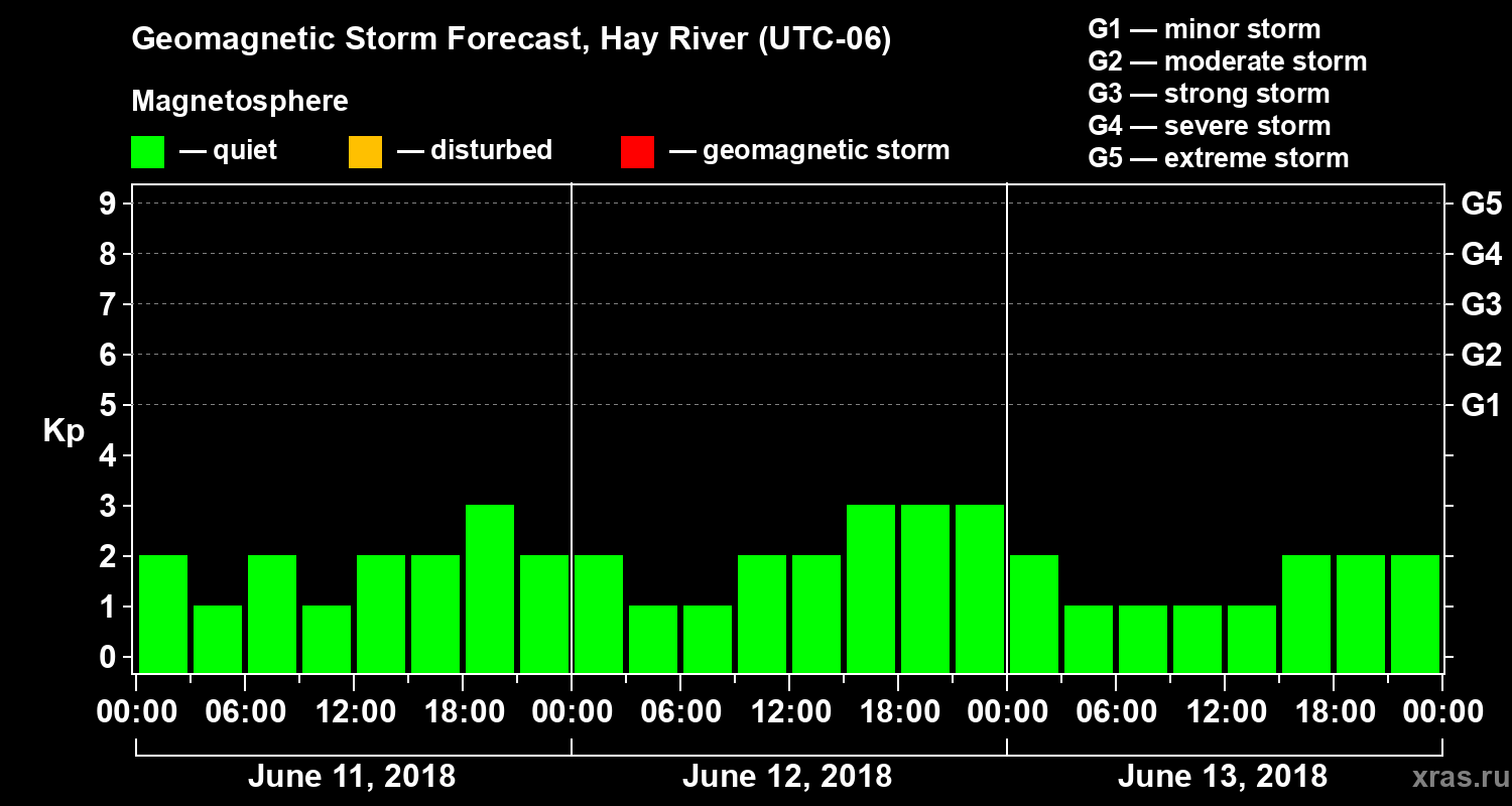 Geomagnetic storm forecast in Hay River for Jun 11, 2018
