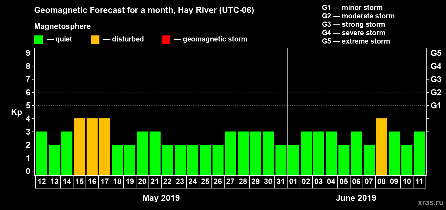 Geomagnetic storm forecast in Hay River for May 12, 2019