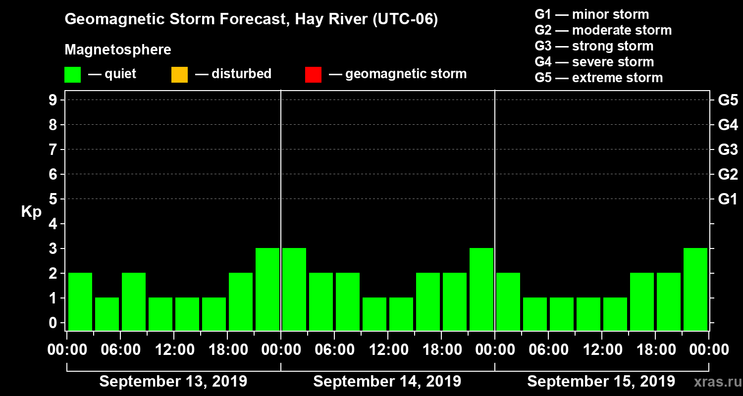 Geomagnetic storm forecast in Hay River for Sep 13, 2019