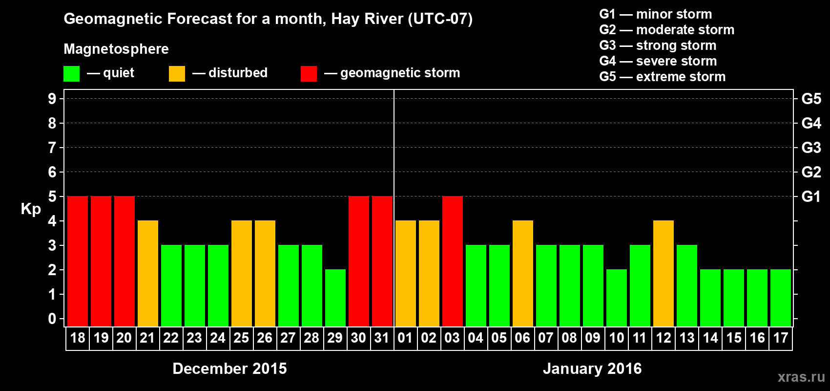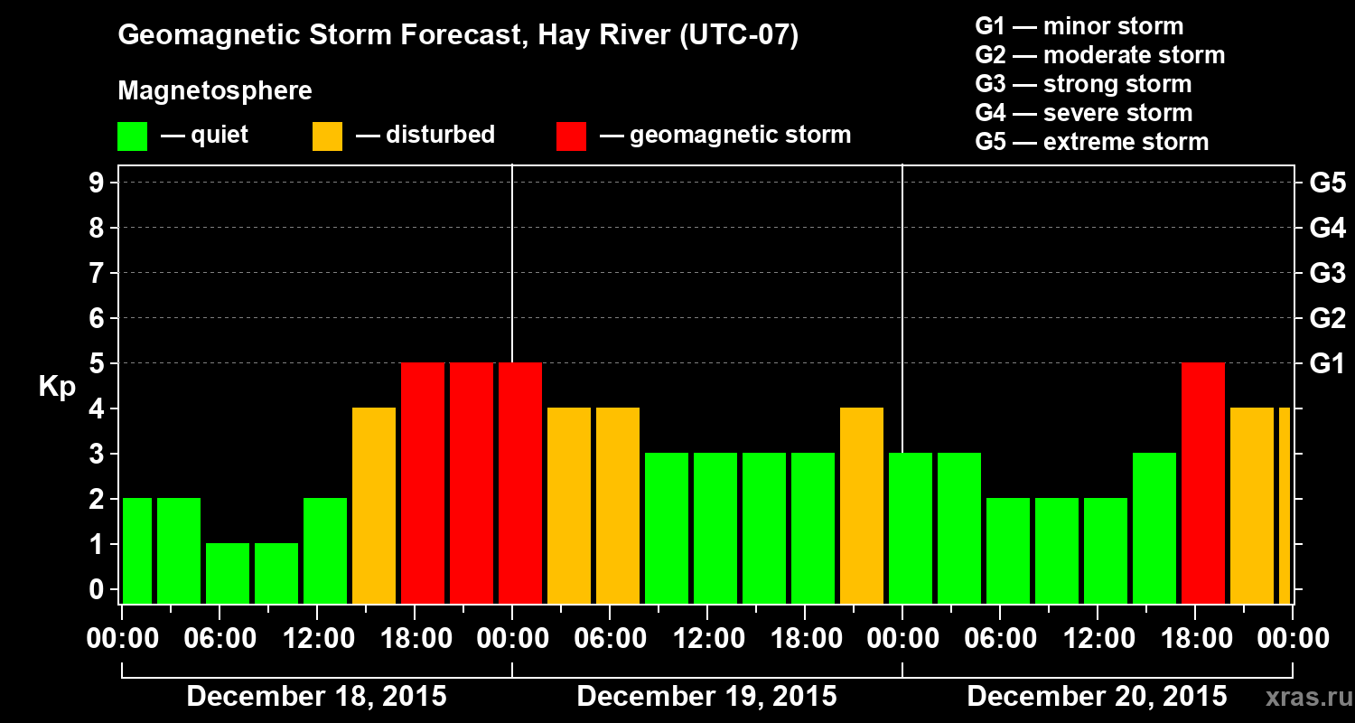 Geomagnetic storm forecast in Hay River for Dec 18, 2015