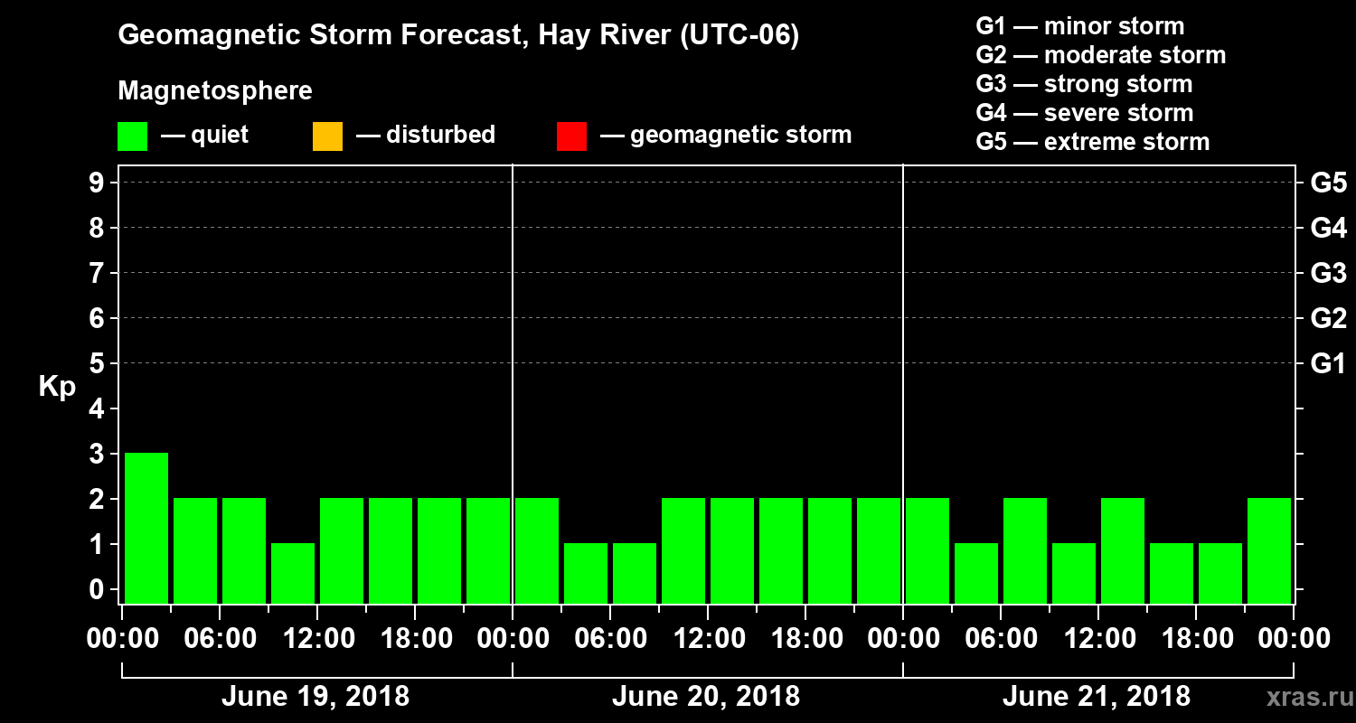 Geomagnetic storm forecast in Hay River for Jun 19, 2018