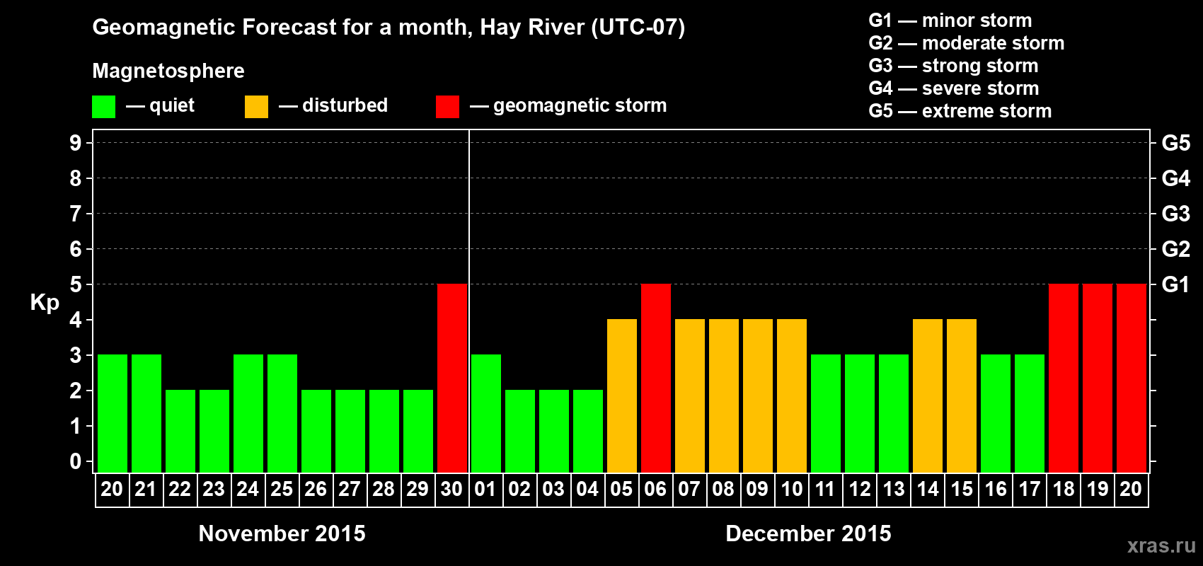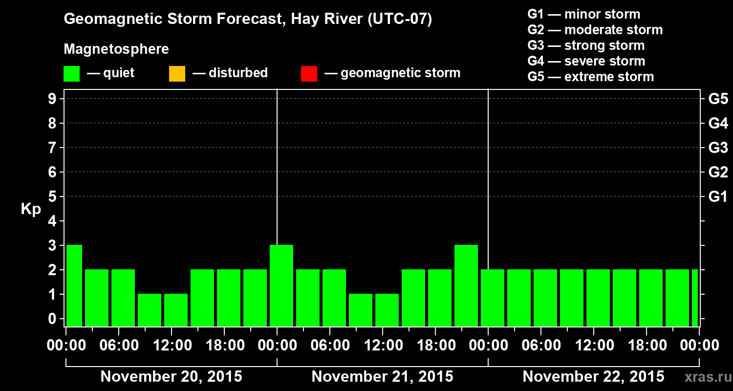 Geomagnetic storm forecast in Hay River for Nov 20, 2015