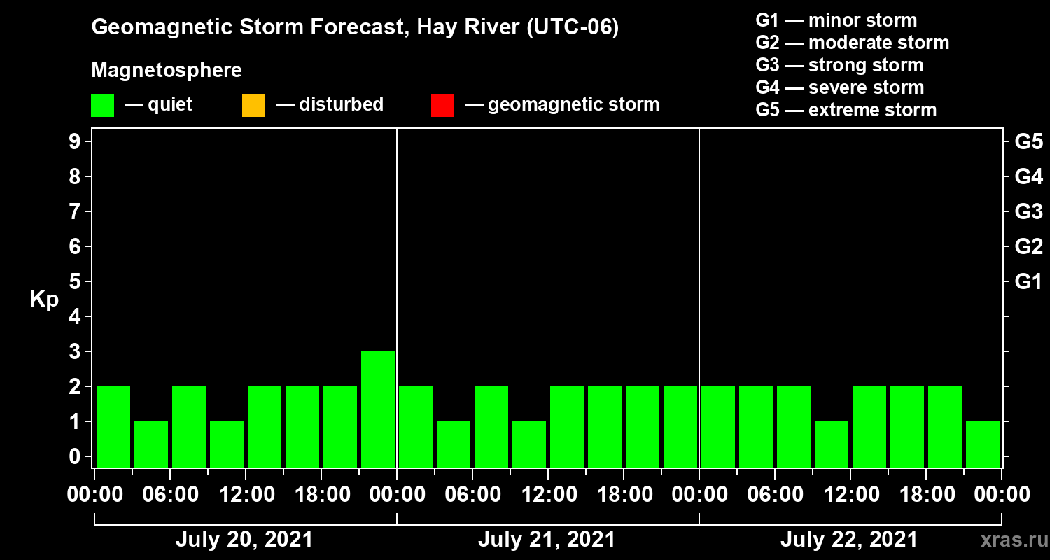 Geomagnetic storm forecast in Hay River for Jul 20, 2021