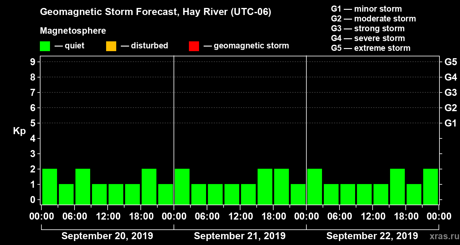 Geomagnetic storm forecast in Hay River for Sep 20, 2019