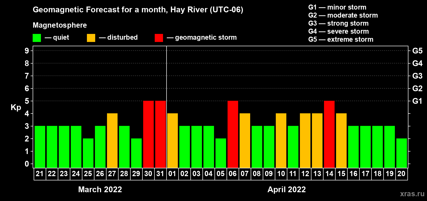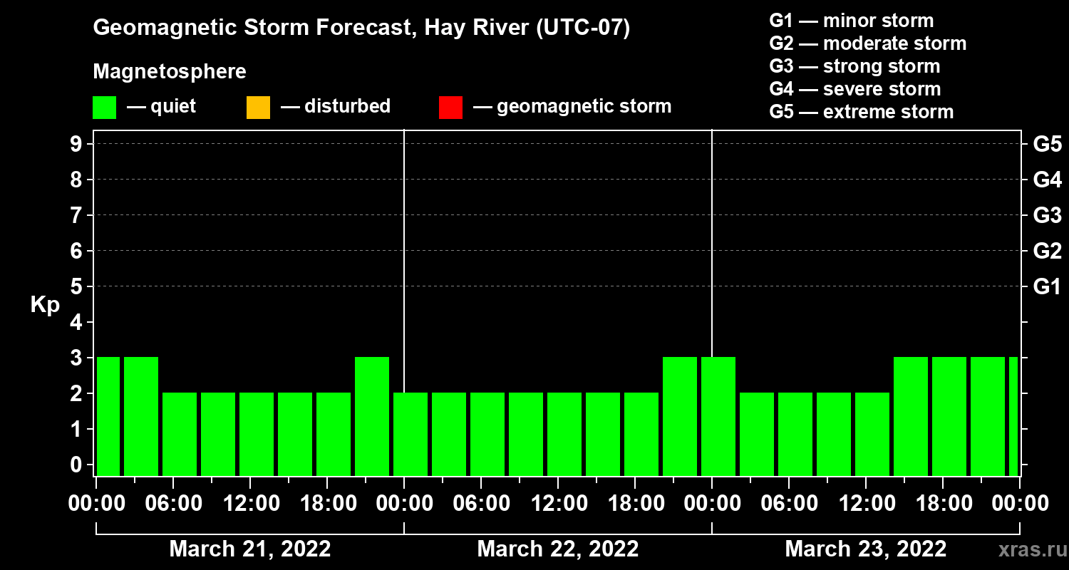 Geomagnetic storm forecast in Hay River for Mar 21, 2022