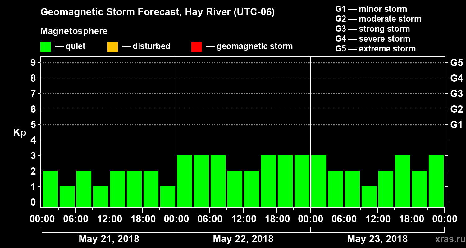 Geomagnetic storm forecast in Hay River for May 21, 2018