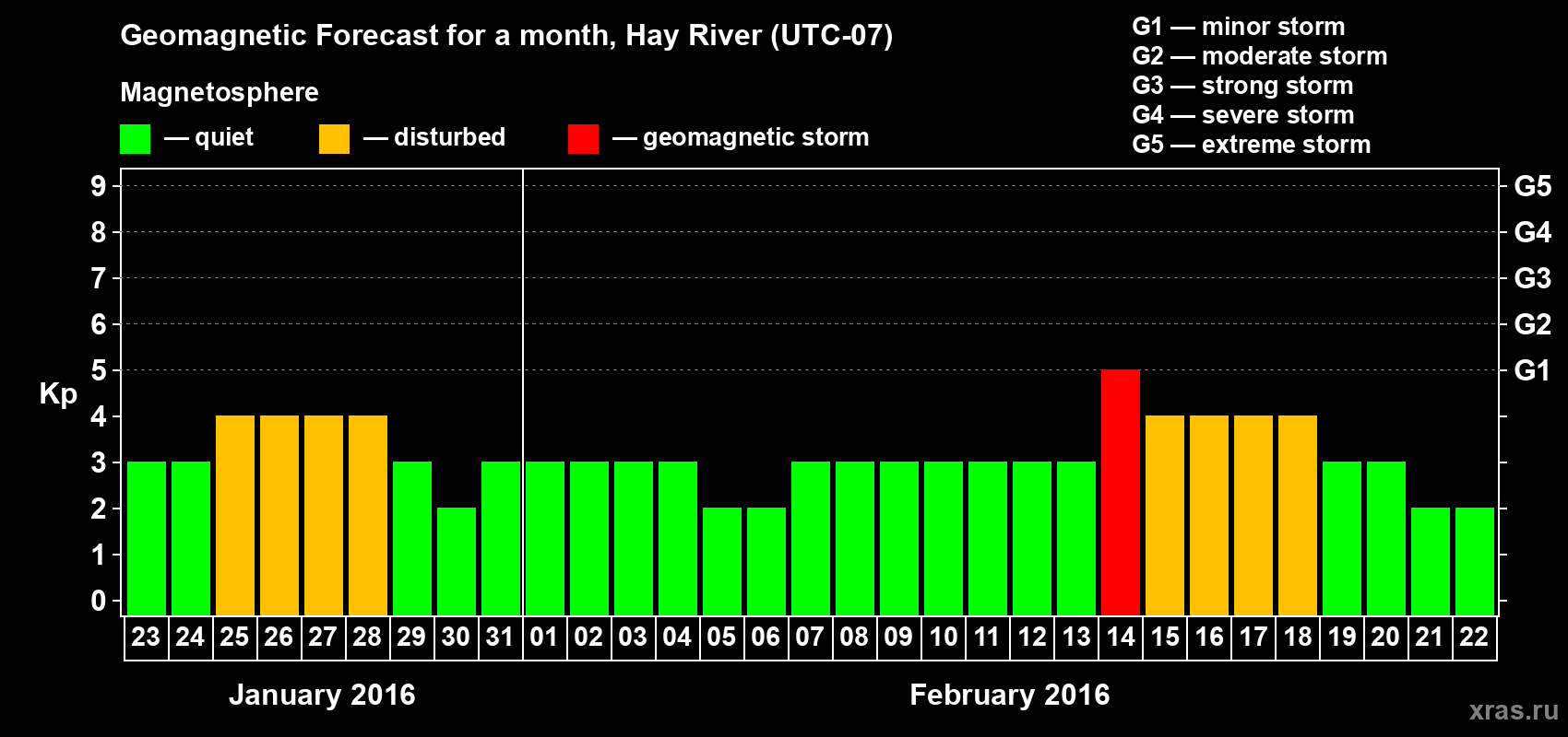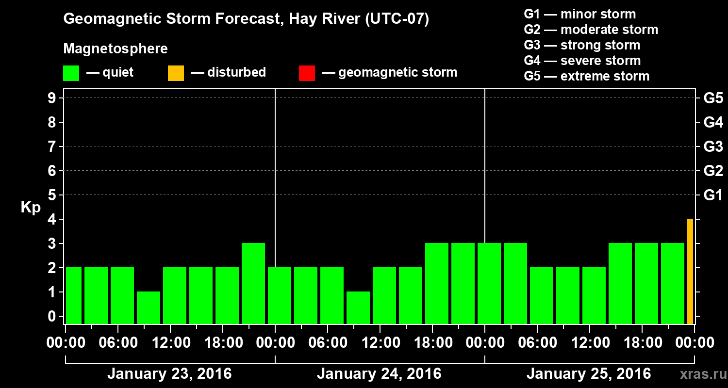 Geomagnetic storm forecast in Hay River for Jan 23, 2016