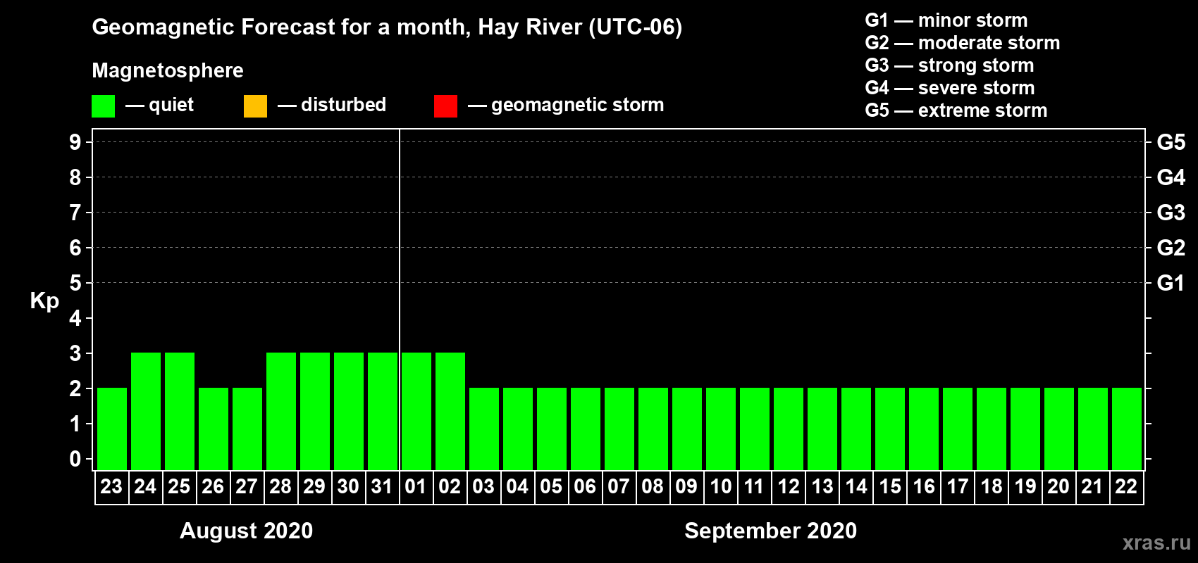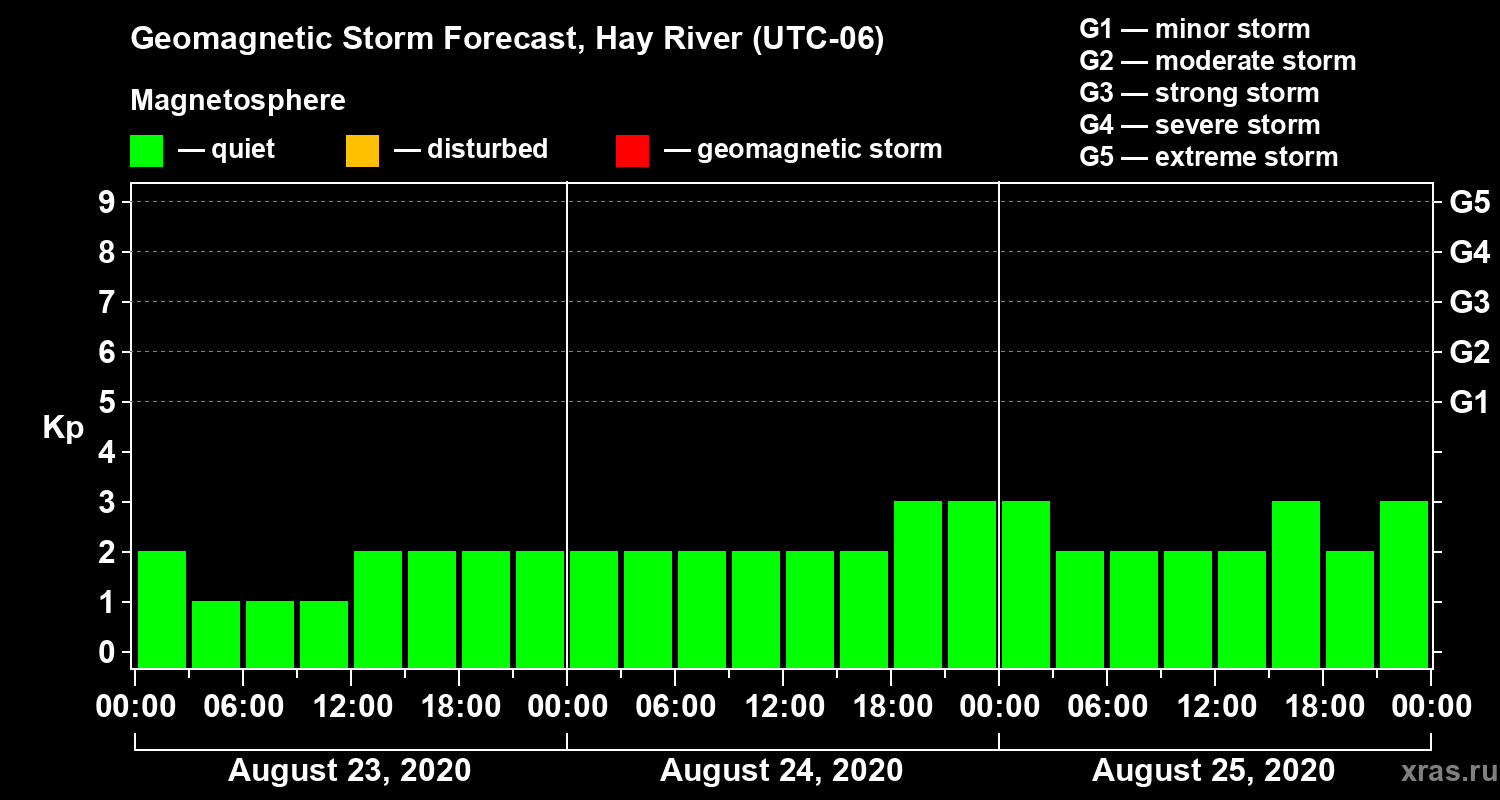 Geomagnetic storm forecast in Hay River for Aug 23, 2020