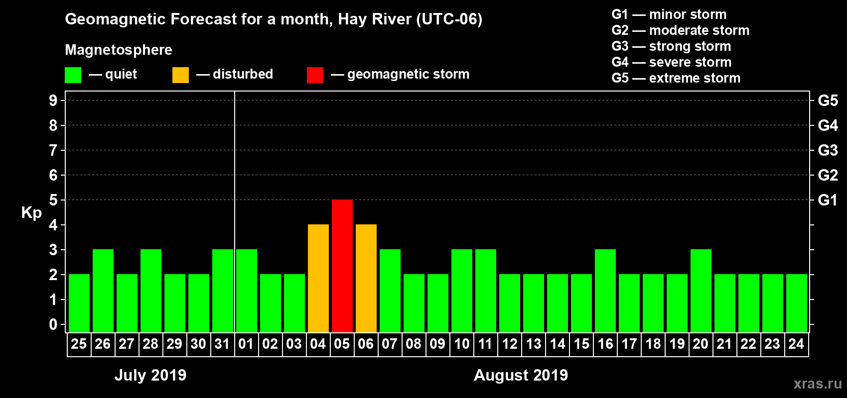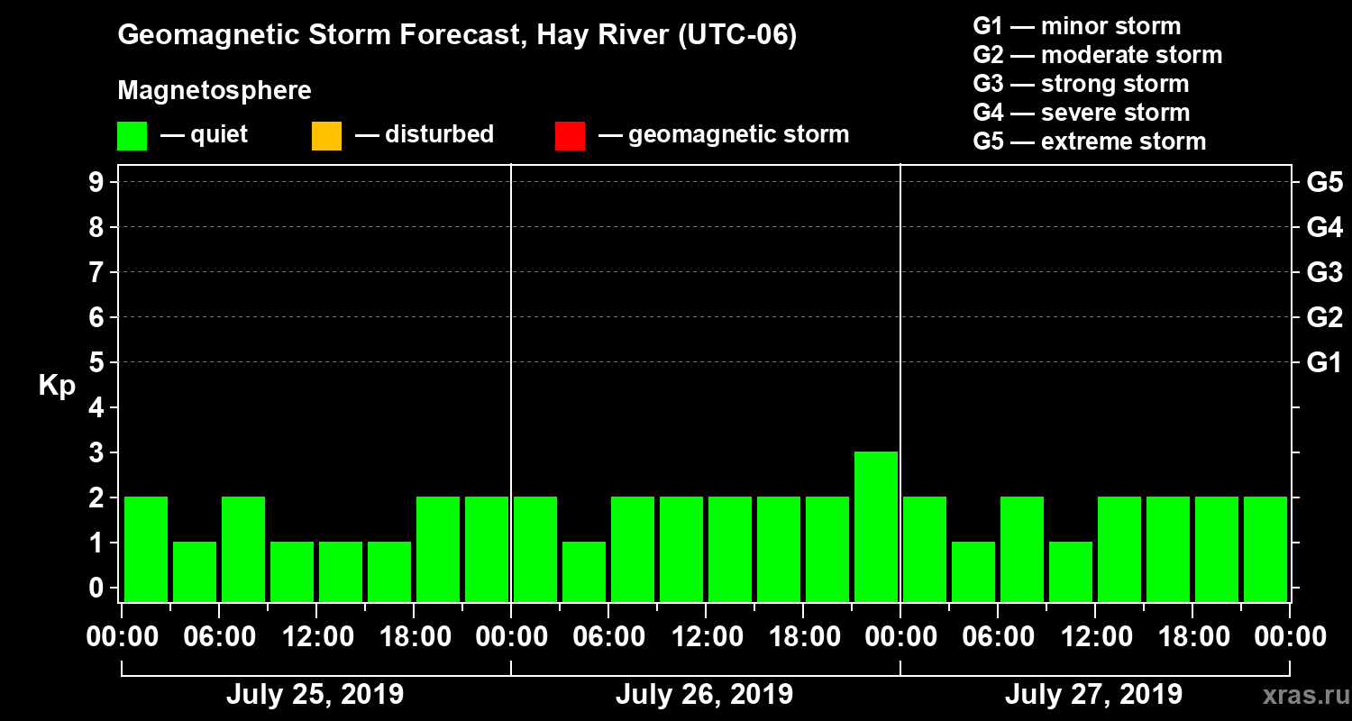 Geomagnetic storm forecast in Hay River for Jul 25, 2019