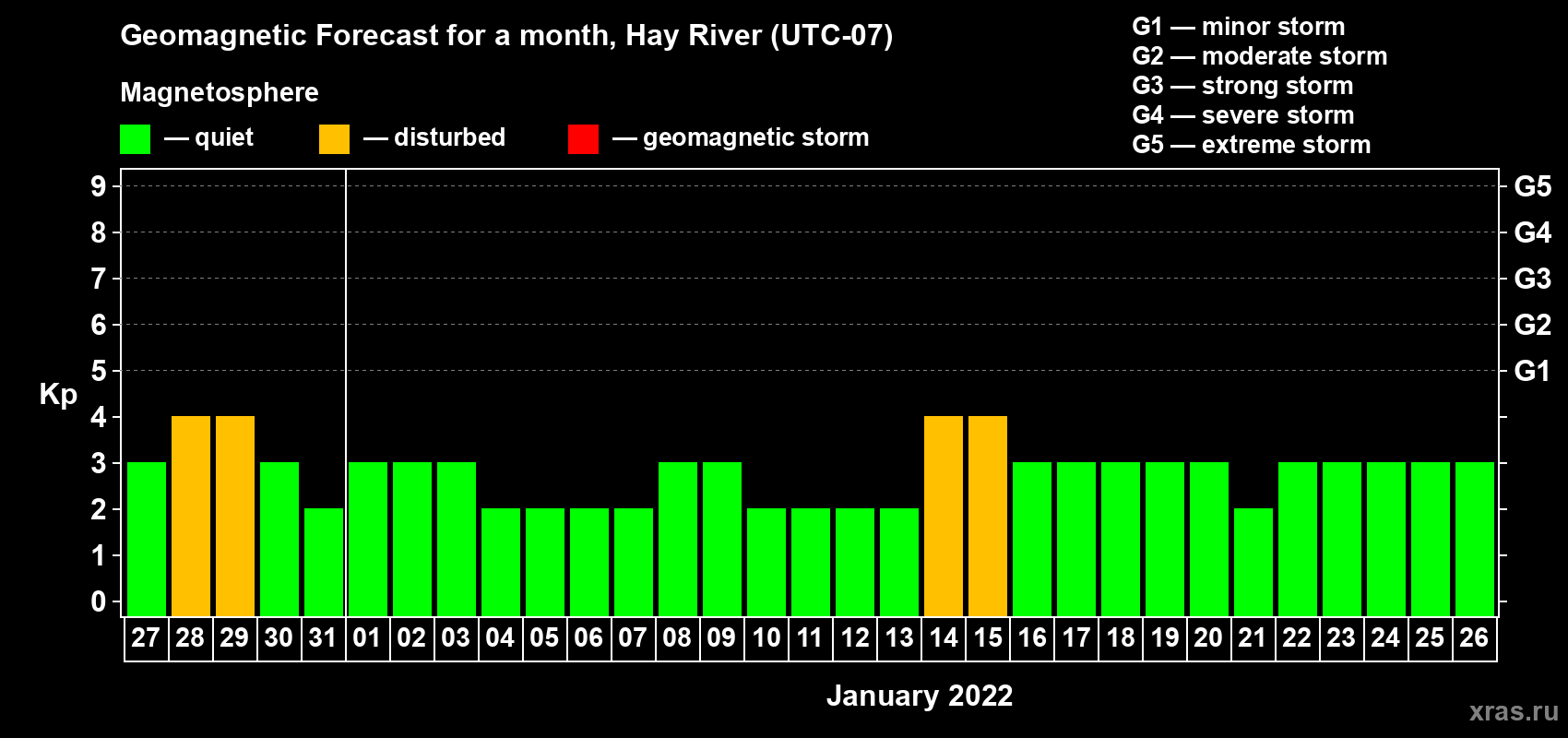 Geomagnetic storm forecast in Hay River for Dec 27, 2021