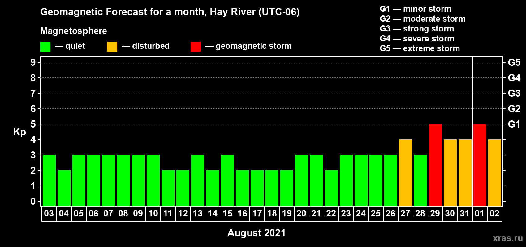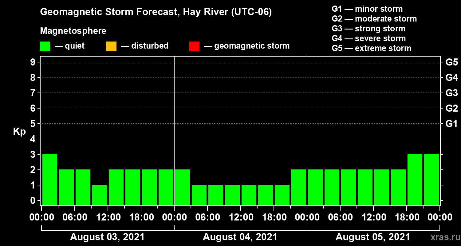 Geomagnetic storm forecast in Hay River for Aug 03, 2021