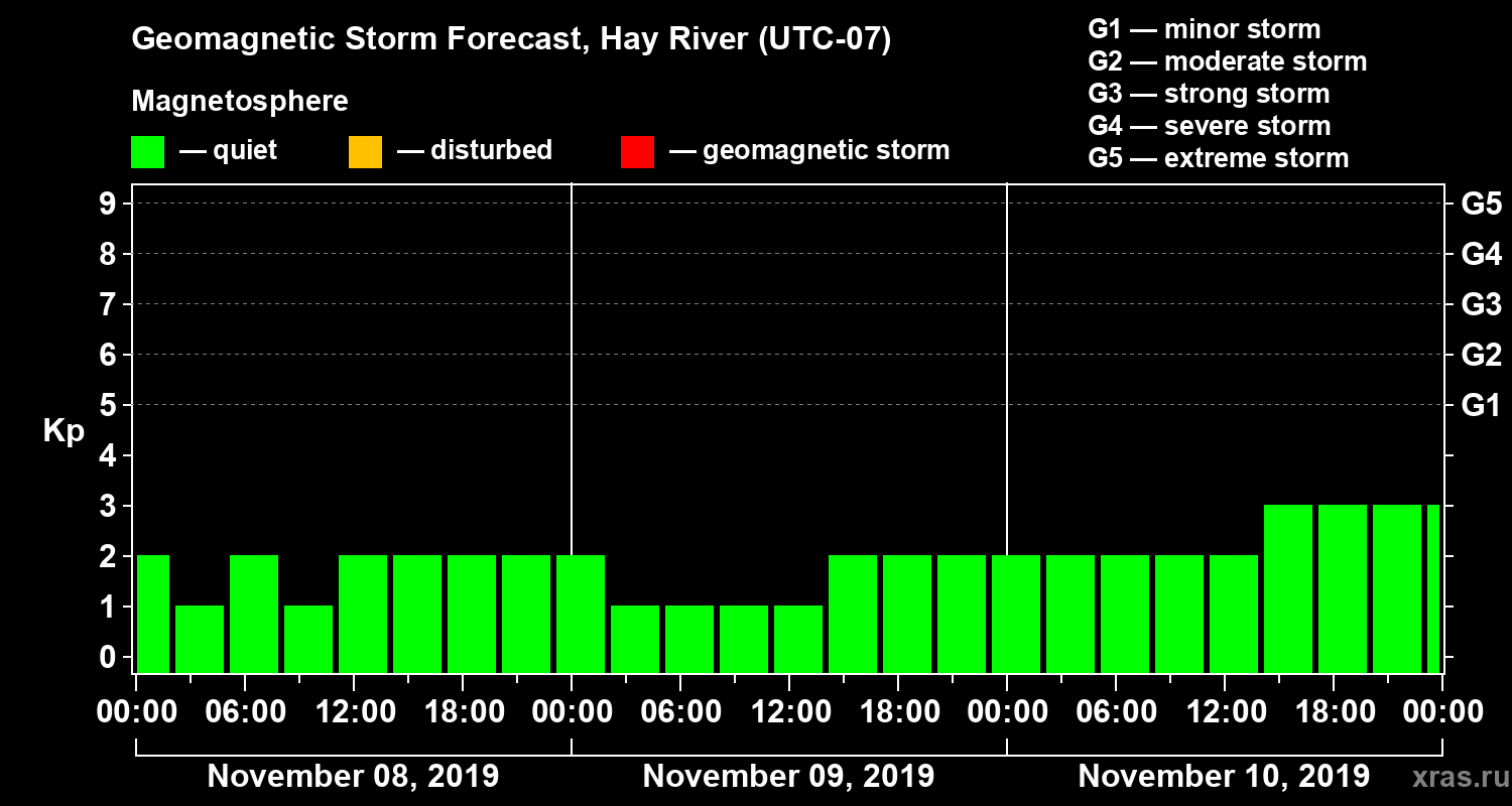 Geomagnetic storm forecast in Hay River for Nov 08, 2019