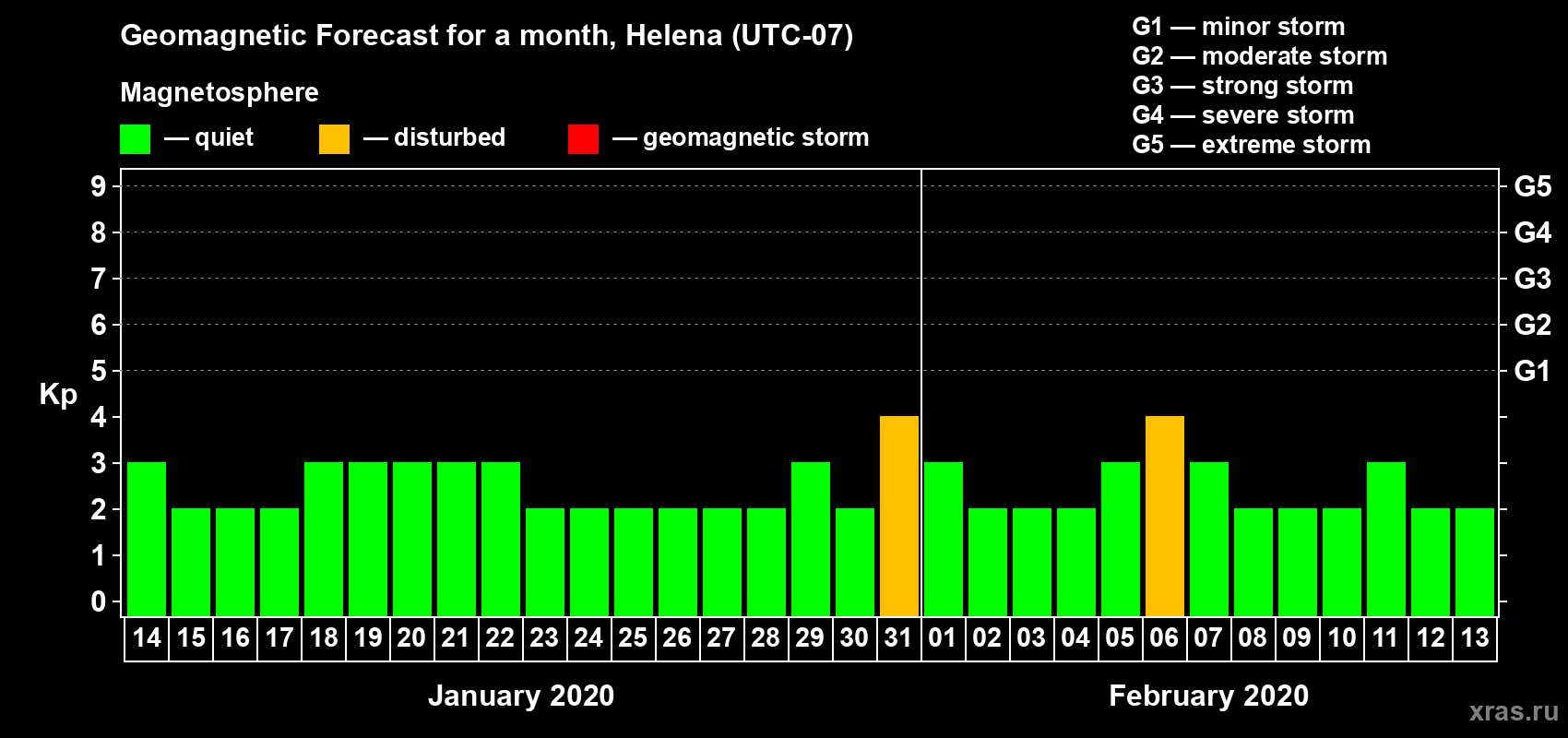 Geomagnetic storm forecast in Helena for Jan 14, 2020