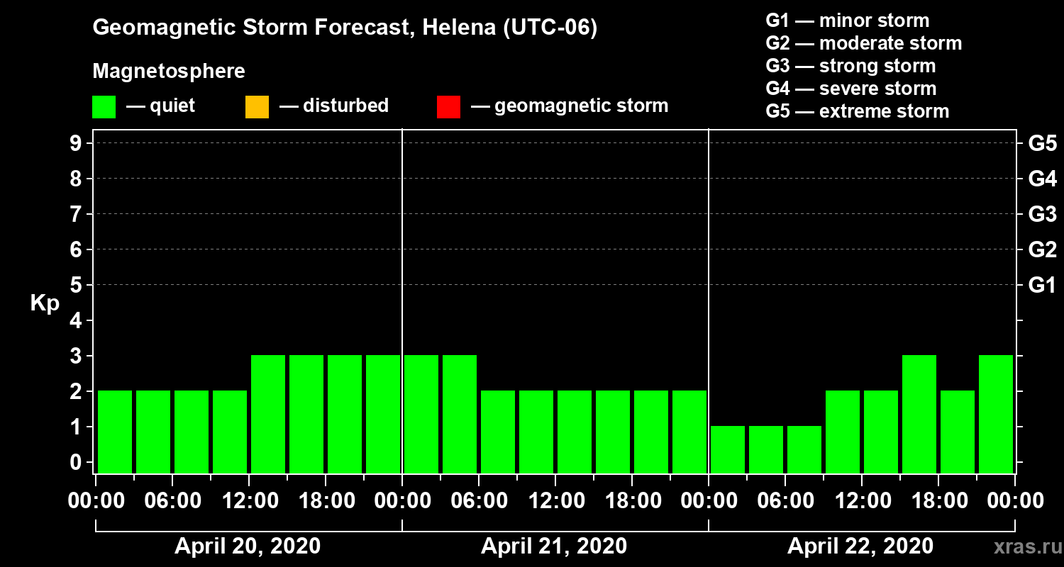 Geomagnetic storm forecast in Helena for Apr 20, 2020