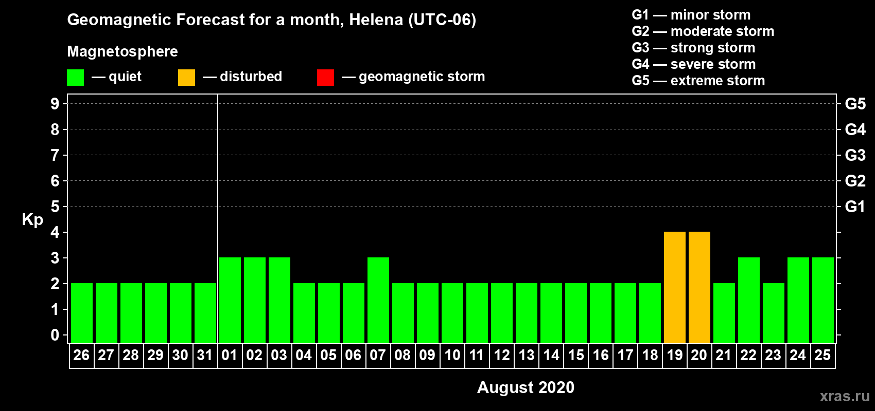 Geomagnetic storm forecast in Helena for Jul 26, 2020