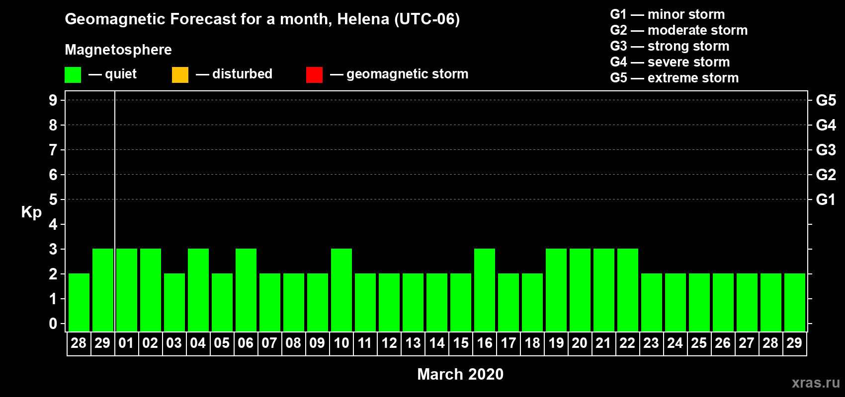 Geomagnetic storm forecast in Helena for Feb 28, 2020