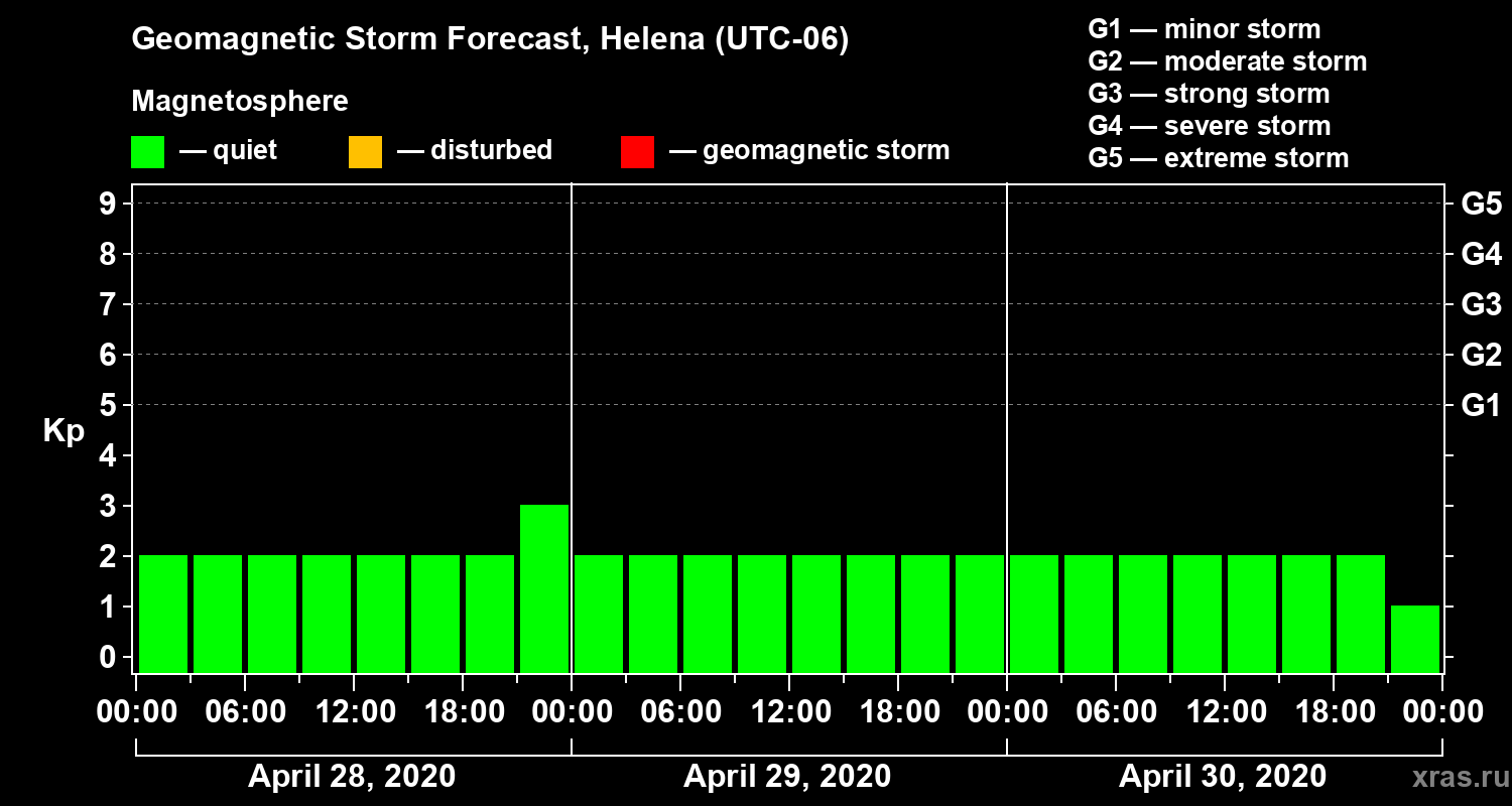 Geomagnetic storm forecast in Helena for Apr 28, 2020