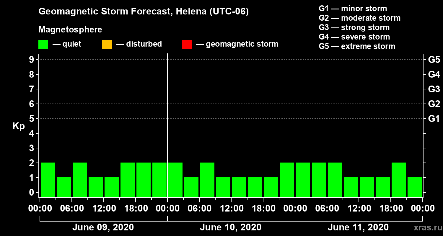 Geomagnetic storm forecast in Helena for Jun 09, 2020