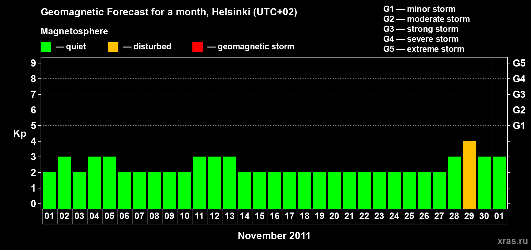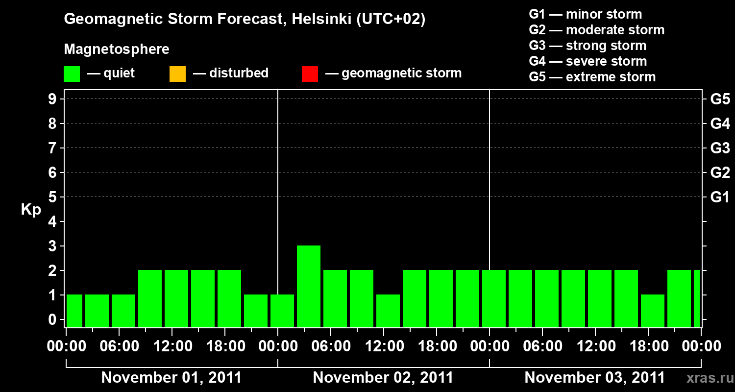 Geomagnetic storm forecast in Helsinki for Nov 01, 2011