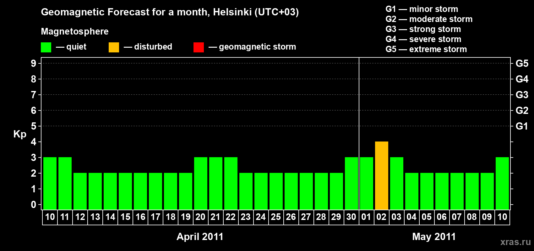 Geomagnetic storm forecast in Helsinki for Apr 10, 2011
