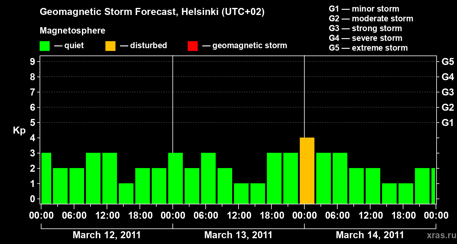 Geomagnetic storm forecast in Helsinki for Mar 12, 2011