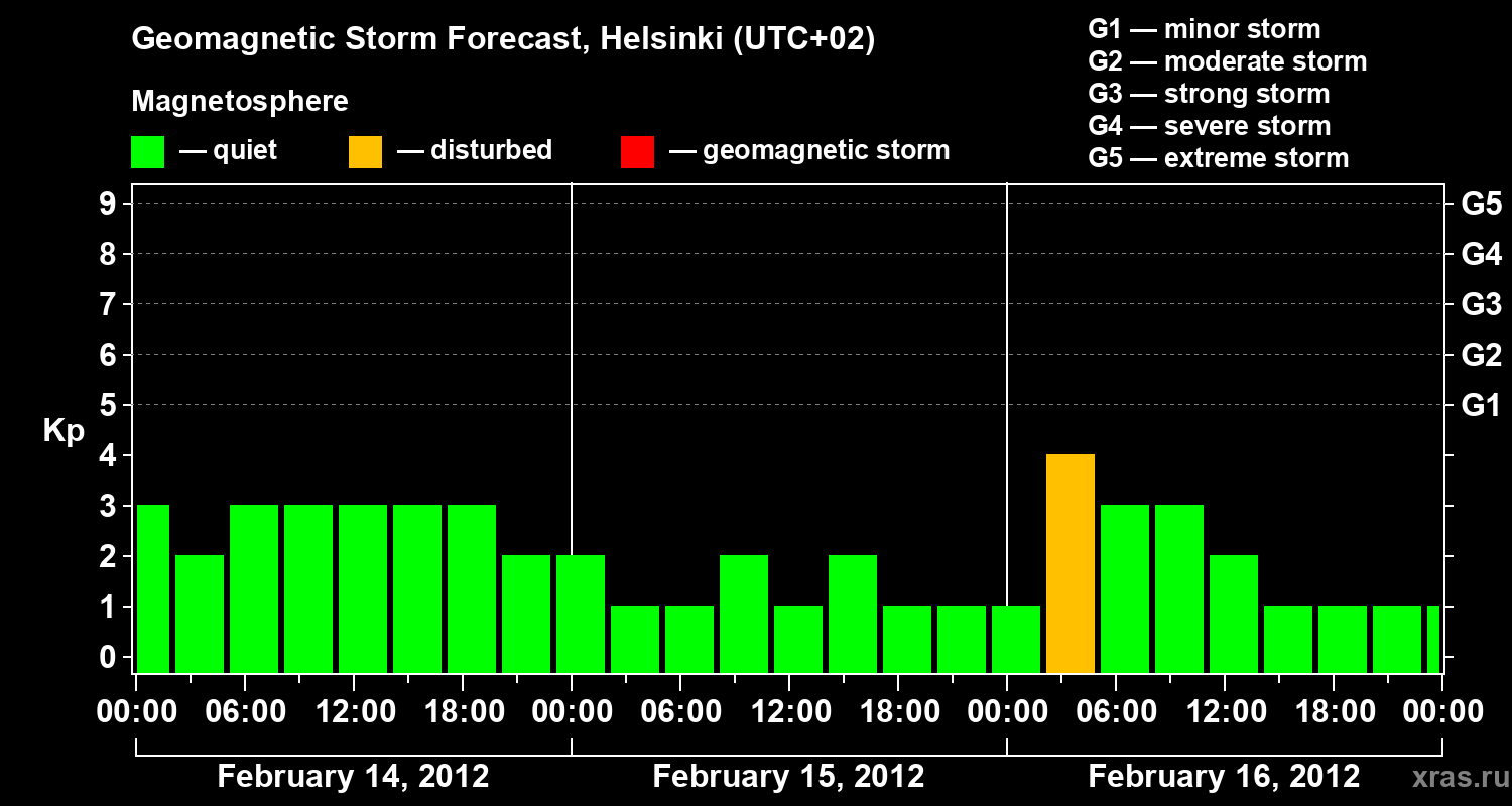 Geomagnetic storm forecast in Helsinki for Feb 14, 2012